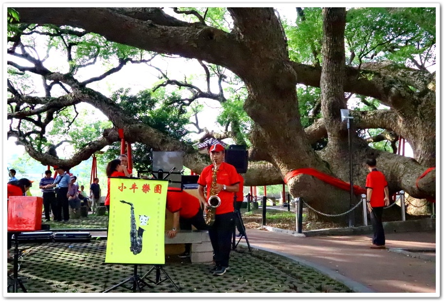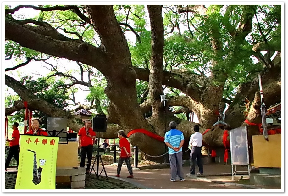 但是當我們在苗栗造橋『龍昇湖』金瓜綠龍隧道(幸福苗栗2019南瓜節產業文化活動)拍完照,離開『苗栗』於回程的路上,我們的導遊又發現離下午5點吃飯時間還太早,所以來到『台中后里』時,又多安排一處后里區月眉糖廠『千年神木澤民大樟樹公』讓我們拍照消化時間。早知如此!那在淡水時,讓我們多玩『紅毛城』、『小白宮』、『英國領事館』不是更好嗎?