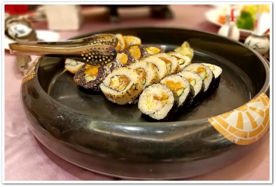 『江屋日本料理店─台中東區店』由我們導遊『萍姊』的妹妹掌理,同時導遊『萍姊』也曾為料理店的員工,後來才離開自行開設遊覽車創業,兩姊妹都是女中豪傑,在失婚狀況下還能在商場上開創一片天,使人不得不佩服兩姊妹的生意頭腦,以及過人的堅強毅力