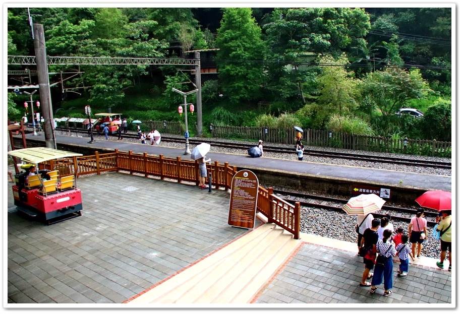 我們只知道『勝興愛情故事館』在『勝興火車站』附近,但卻不知其確切位置,所以當看見『勝興老街』人潮這麼多時,心想只要見到有停車位就應該馬上停,所以當我們來到『十六份人文茶館』旁邊的小型收費停車場,發現有停車位時,就馬上趕緊停進去,一小時50元
