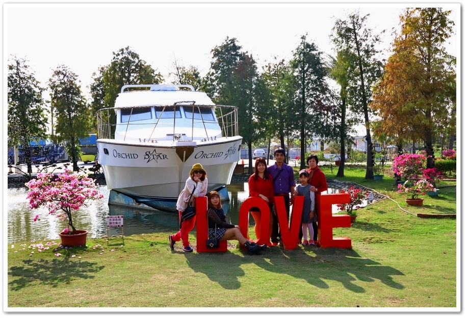 豪華遊艇、紅色LOVE,如此漂亮浪漫的場景,免不了要來張大合照
