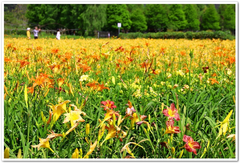 多彩多姿的『頭社盆地』金針花海,目前已有200多種品種,金針花將從5月到9月會依次盛開,且由於是種植在淺湖活盆地上,更是名符其實的『花海』,目前盛開率達到九成,是賞花的最好時刻。拍攝日期:2020年5月9日