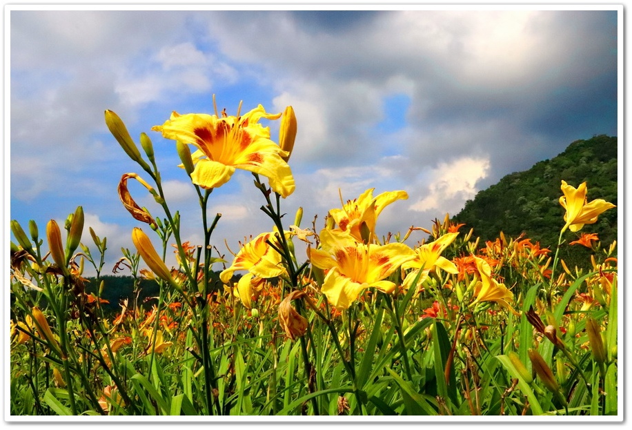 繼彰化『虎山巖』金針花海之後,位於日月潭旁的『頭社盆地』,也有一片廣達3公頃的金針花海,目前也正值盛開季節,不但有金橘色的耀眼品種,甚至還有鮮豔七彩的金針花,令人大開眼界