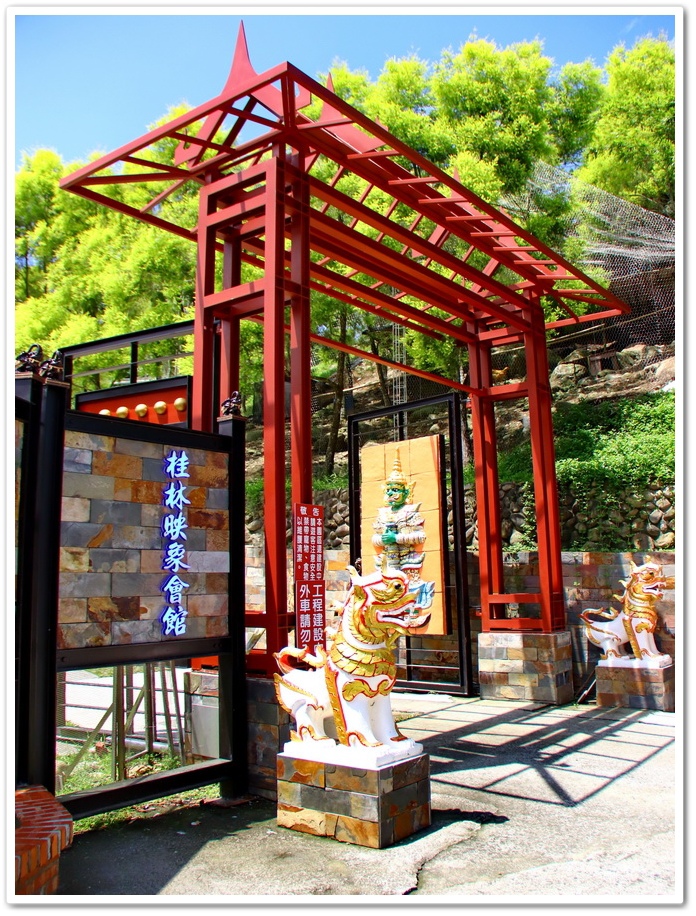 『桂林映象會館』是一處類似泰國風格的渡假會館,騎著機車經『劍湖山遊樂園』停車場旁,循著『大湖口溪』前進就會到達古坑『桂林村』景水社區