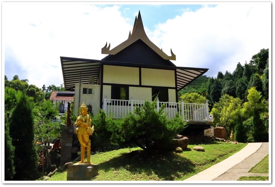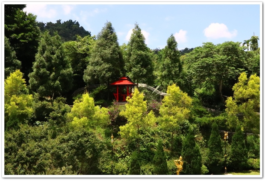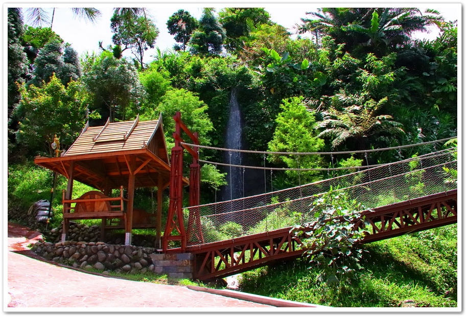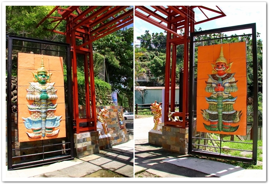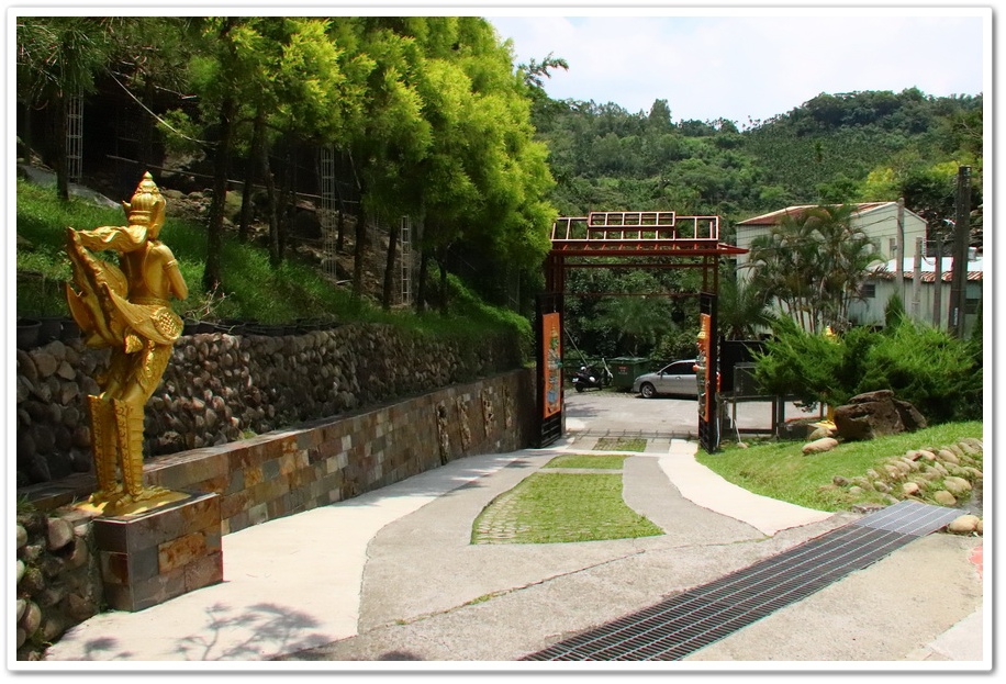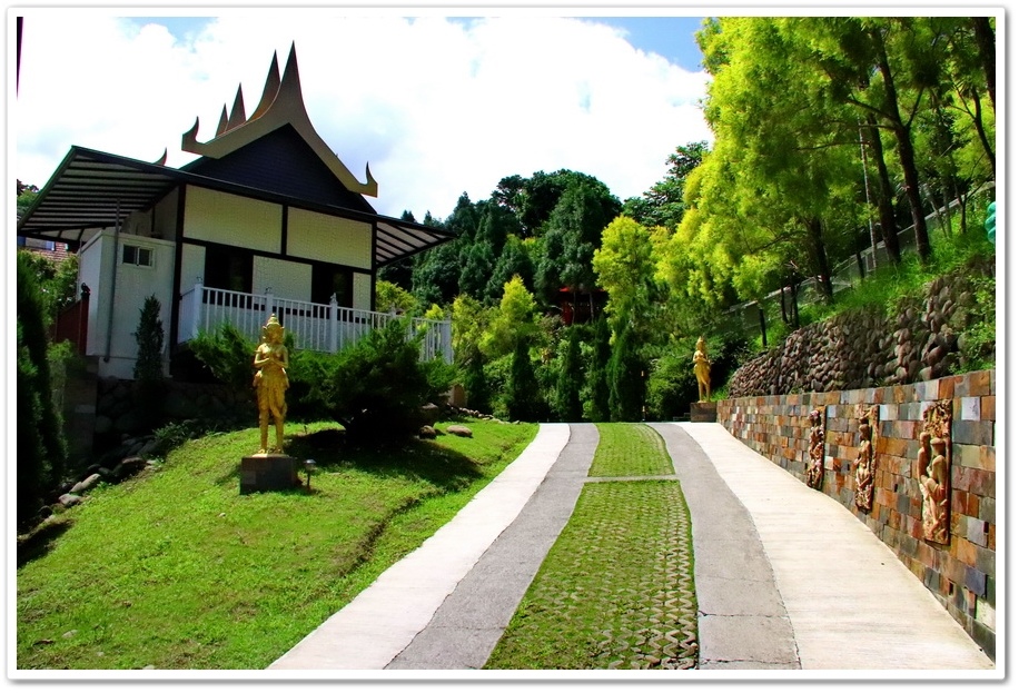 從入口開始就可見到不少泰國神像,與許多座的發呆亭,另有綠意步道欣賞美麗山景、小橋、流水等,這裡還有可供小孩子玩沙及溜滑梯等設施,並設置兒童親水池,引近山泉水,是夏日戲水的最佳場所,重要的是可以免費入園參觀哦!
