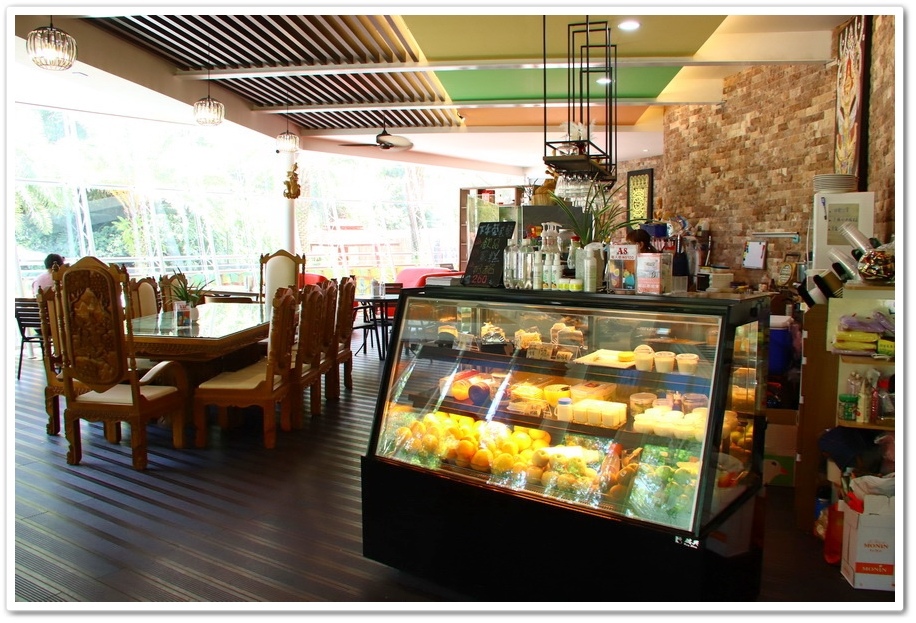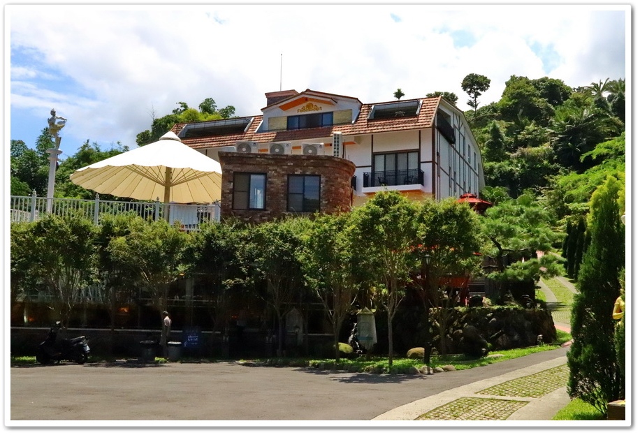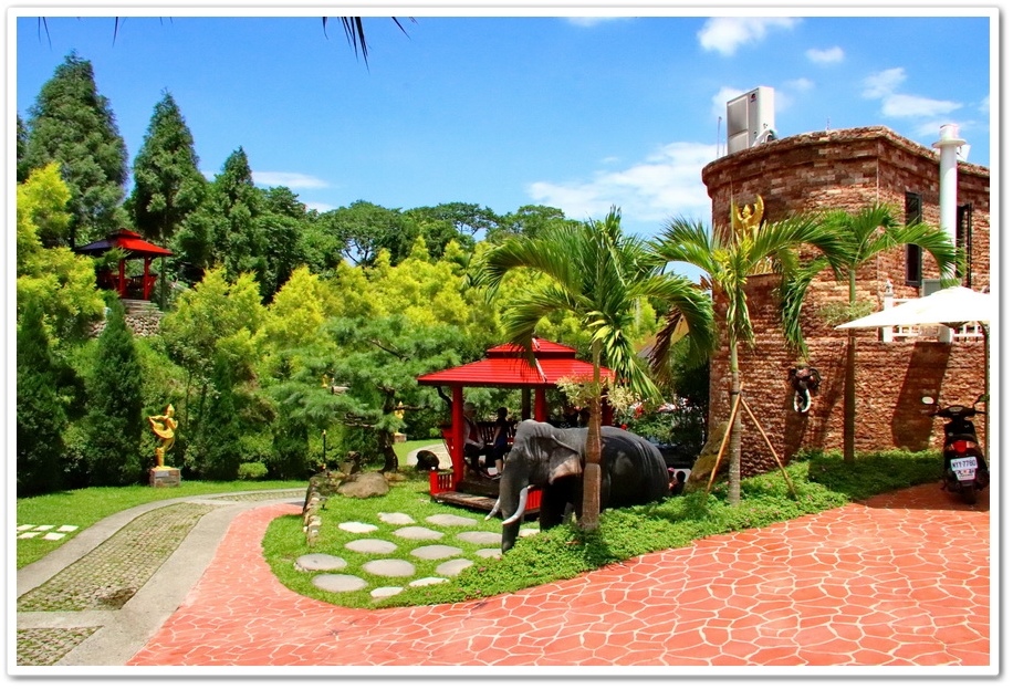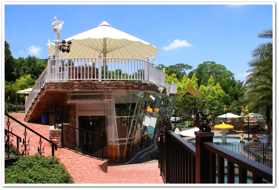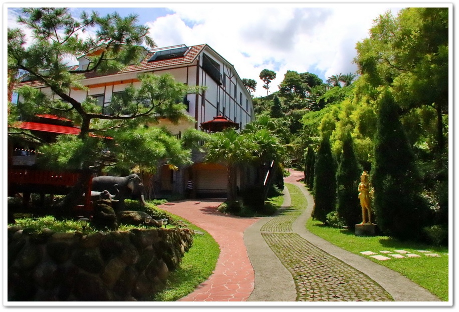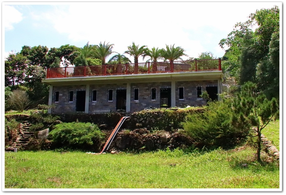 沿著山坡直上,所見到的是園區主建築,主要的一棟建築是老闆的住所,住所前面是一座餐廳,後面還在建設中的建築,是老闆用來招待友人的住所,目前餐廳只提供下午茶使用,據說未來還會規劃火鍋、泰式料理