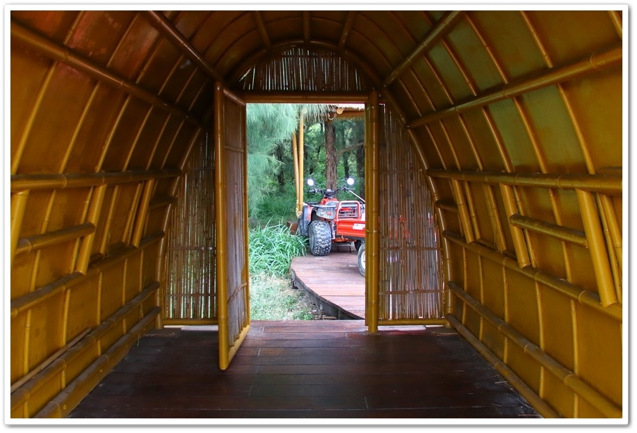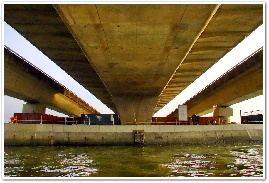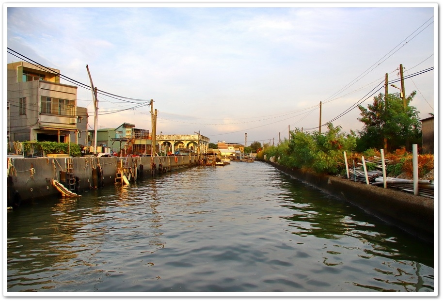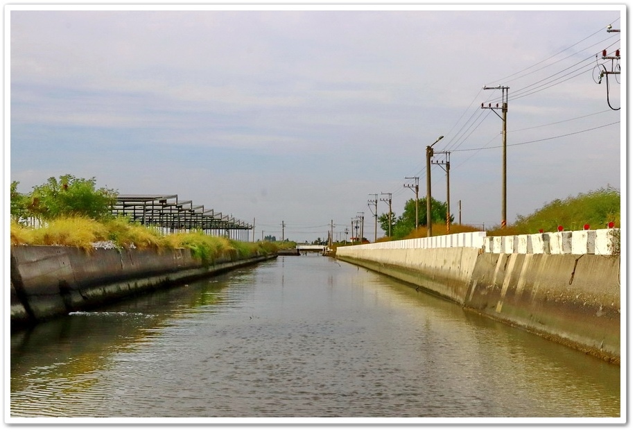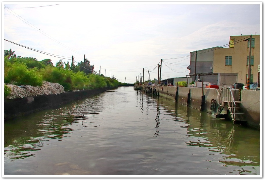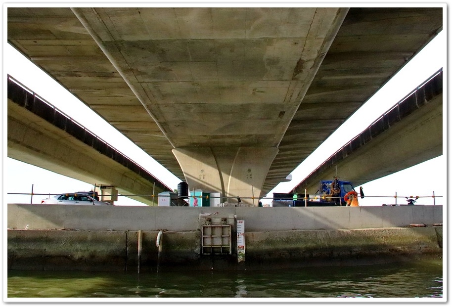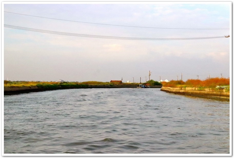 竹筏由『龍山漁港』航行於『六成大排水溝』出海,會經過一處『海巡隊檢查哨』,然後再穿過『台61線濱海道路』底下才能到達『七股潟湖』,『六成大排水溝』上方不知道在施做什麼工程,看起來很像一座城堡
