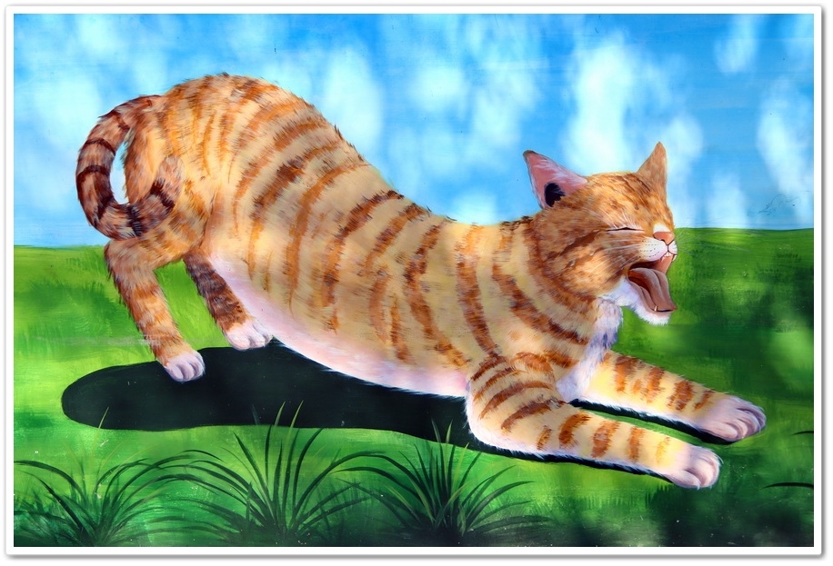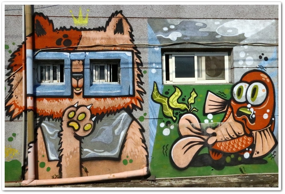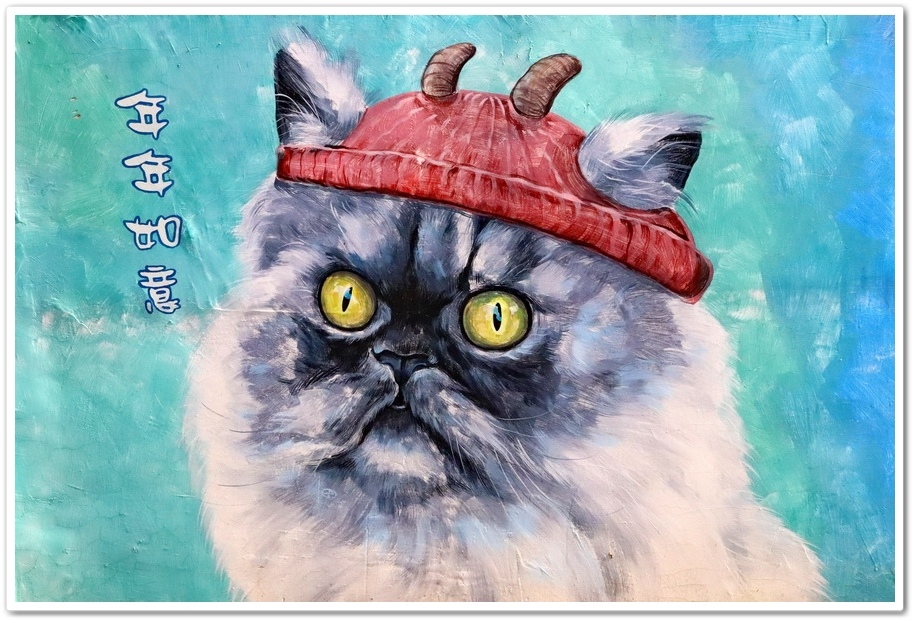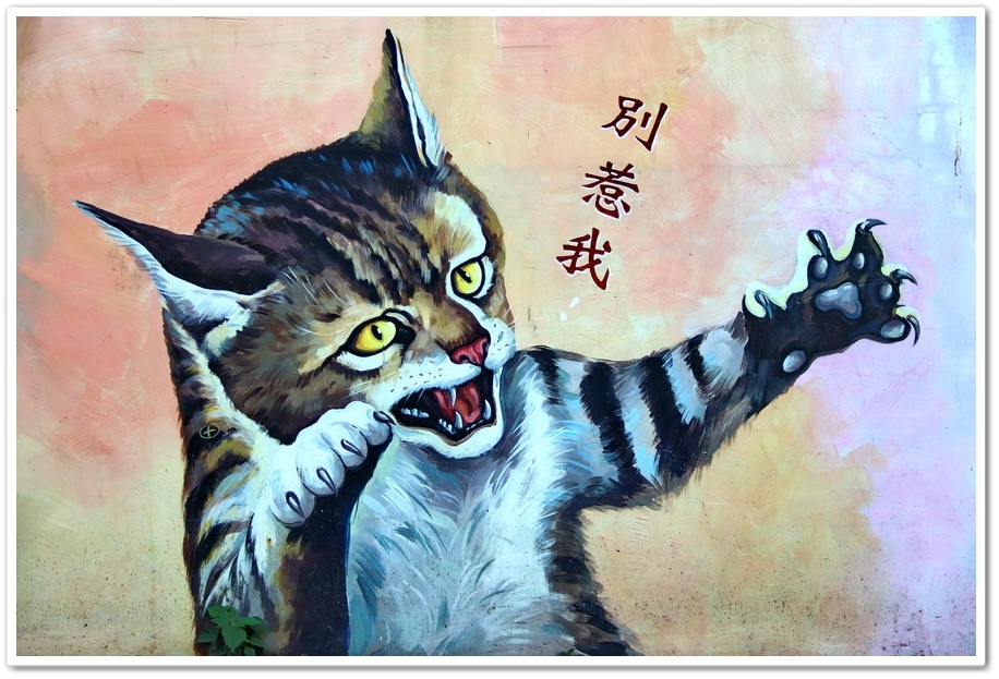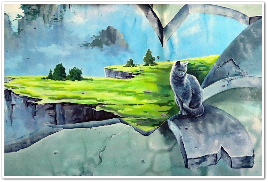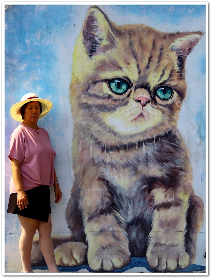 以『打貓』為主題,營造出以貓為主的社區彩繪,範圍雖不大,但逗趣的互動構圖,以及逼真的立體彩繪,仍然具有相當吸引力