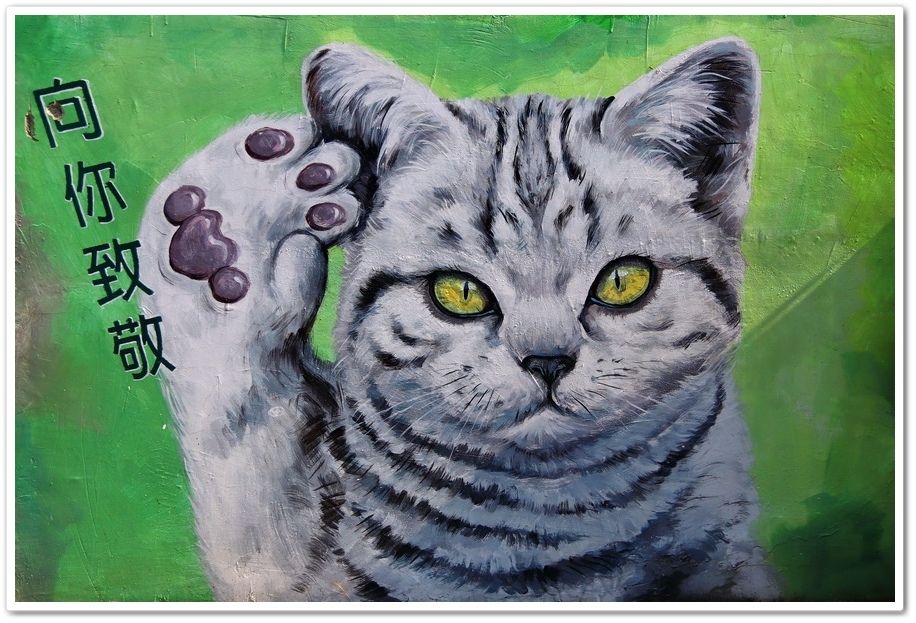 續上篇!當我們在嘉義市東區『阿里山林業藝術園區』的『森林之歌』,拍完草坪上的超大型裝置藝術之後,接著我們來到嘉義民雄『菁埔貓咪彩繪村』,繼續與貓為伍,歡樂一整個下午