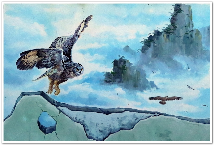 而上圖這一幅彩繪則是跟雲林縣斗六市明德北路三段,『7-ELEVEN 保庄門市』彩繪魔法喵屋有點類似