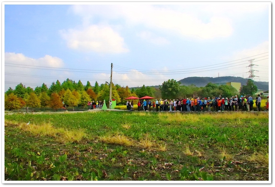但是當我們停好車,走到『泰安國小』後面的落羽松園區時,遠遠就看到了長長的排隊人龍,耶!今天不就是平日嗎?怎麼還是有這麼多的人潮,難道這些人都不用上班嗎?