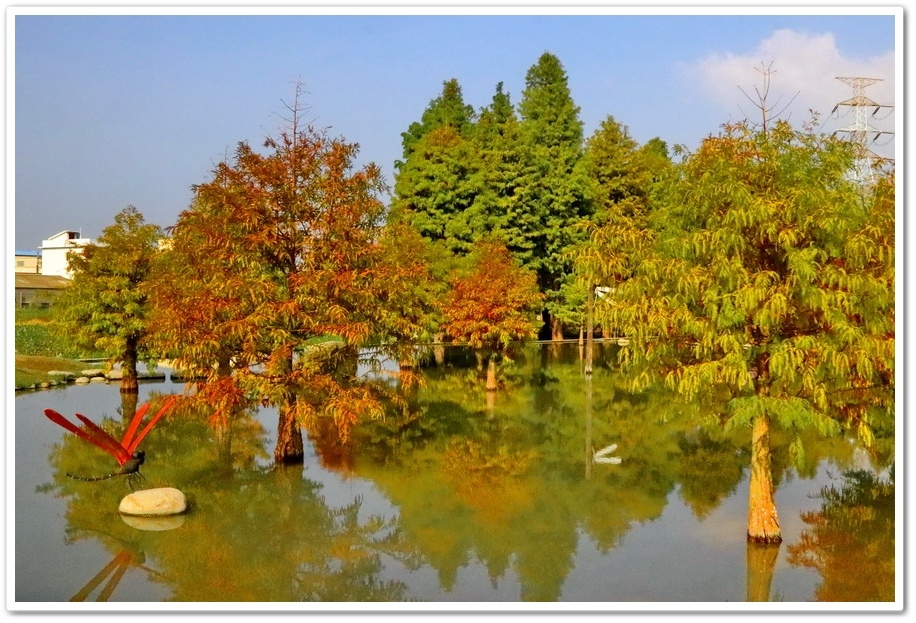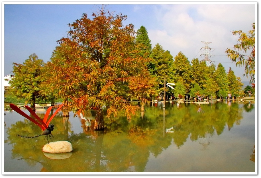 隨便拍都是美圖一幅,隨著季節轉色,紅黃漸層的落羽松更有美感,造訪『泰安羽粼落羽松』,不僅能欣賞自然景緻,還能發揮創意,與藝術造景合影同框,感覺更好拍