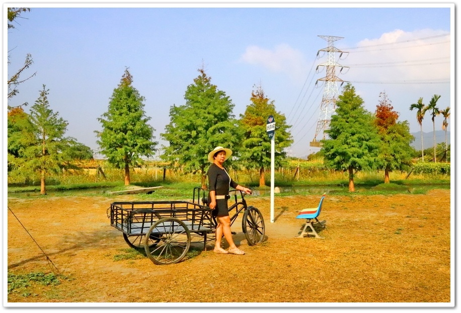 而台中后里『泰安羽粼落羽松』因經營多年,裡頭拍照設施也越來越完備,不僅有許多浪漫的造景,能拍出水中倒影的效果,今年還新增了許多浪漫設施,如Austin Mini骨董車、加長型偉士牌機車、人力三輪車等