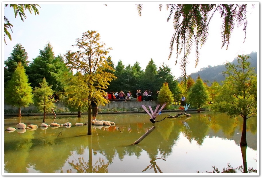 第三:每當落羽松最美的時刻,也是人潮最多的時候,想要避開人潮,就需要選擇非假日來報到,但有時候非假日有空,卻不一定是有太陽的大晴天,還好!落羽松轉紅期間很長,不像一般的賞花,花期只有2、3星期,比較能控制時間