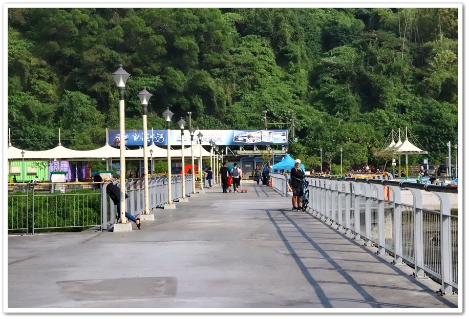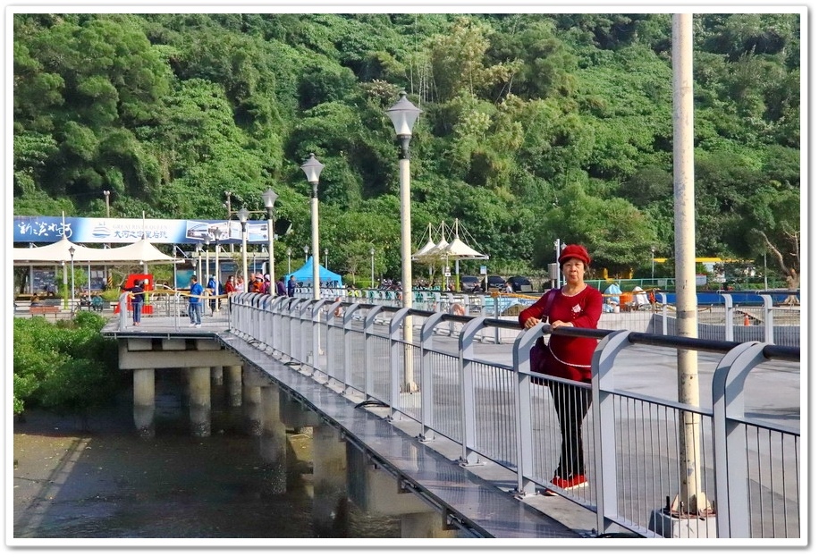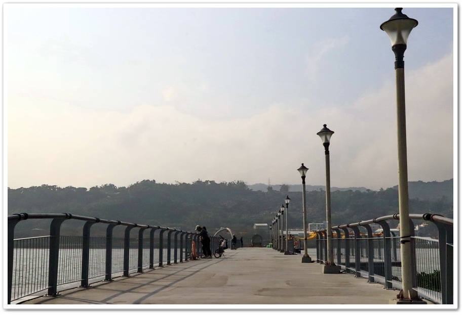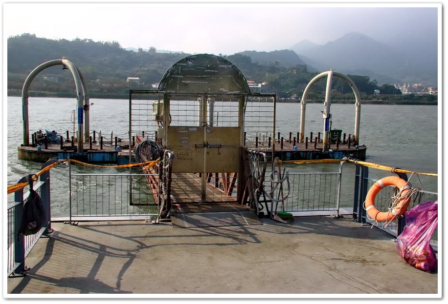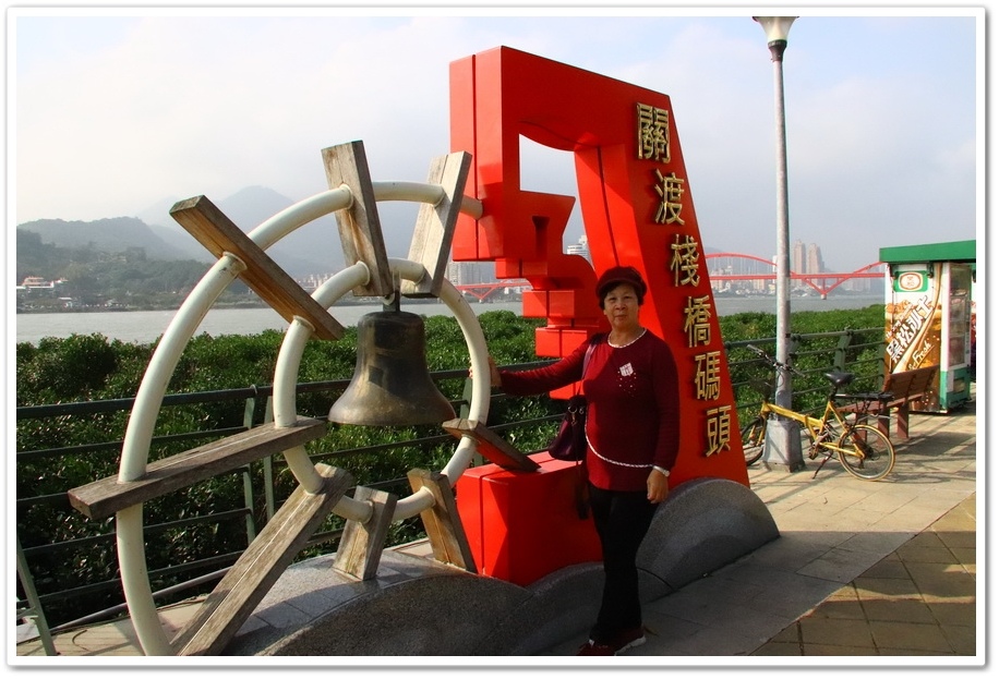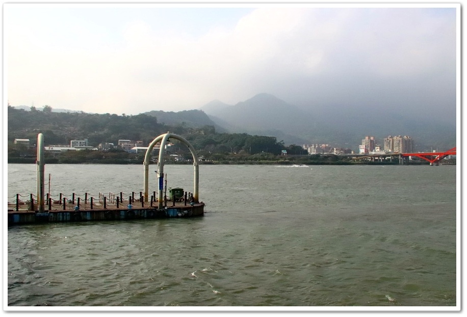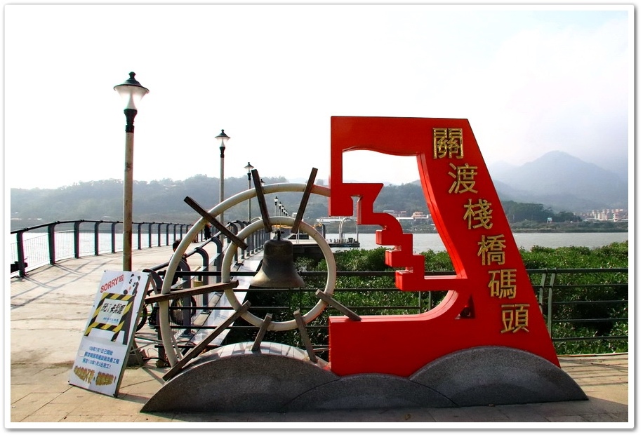 然後我們從『關渡宮』一直走路到『關渡棧橋碼頭』,碼頭位於『關渡宮』旁,從『關渡水岸公園』伸出,是台北市轄區內最北邊的一座碼頭,陸路沿北投『大度路』抵中央北路十字路口,有明顯的告示牌指往『關渡水岸公園』,即可看到『關渡棧橋碼頭』