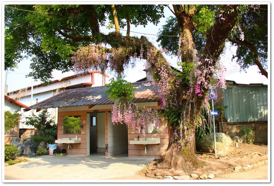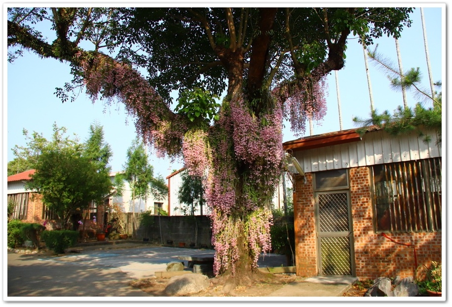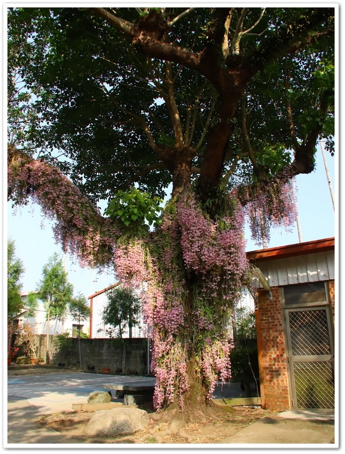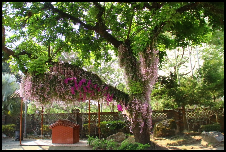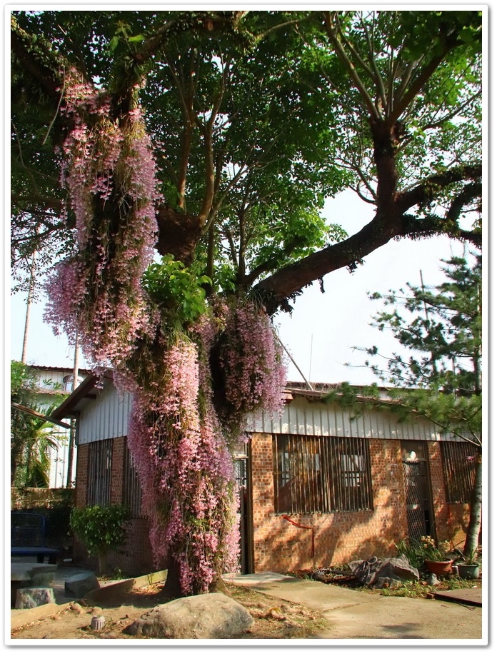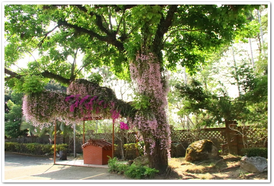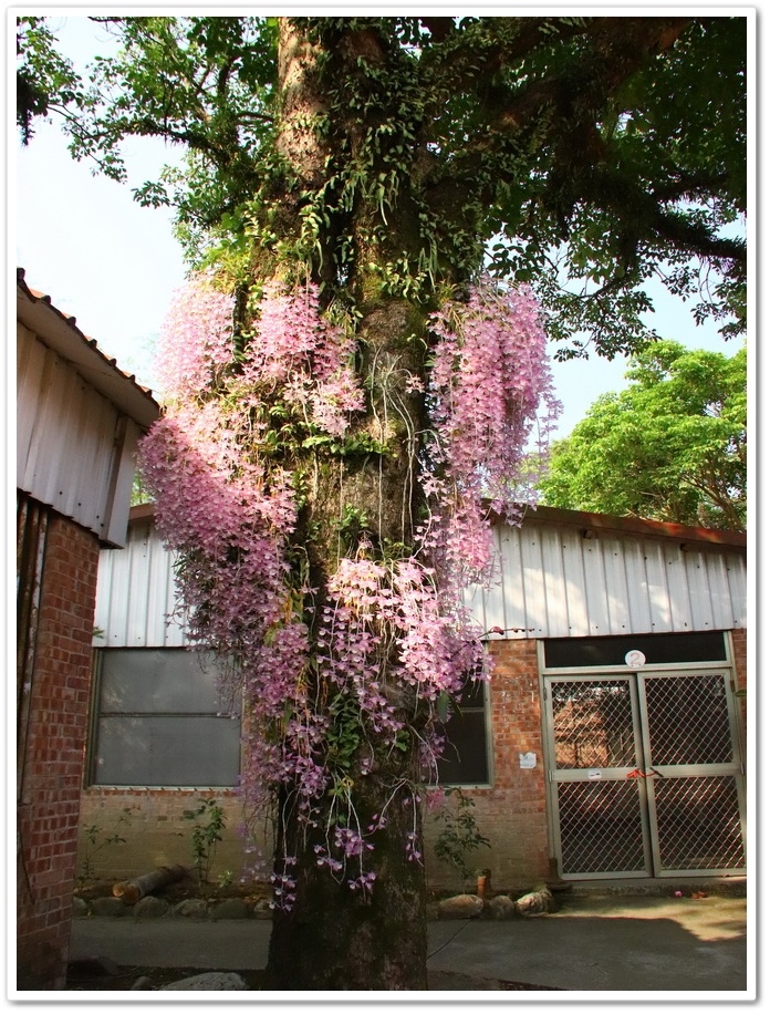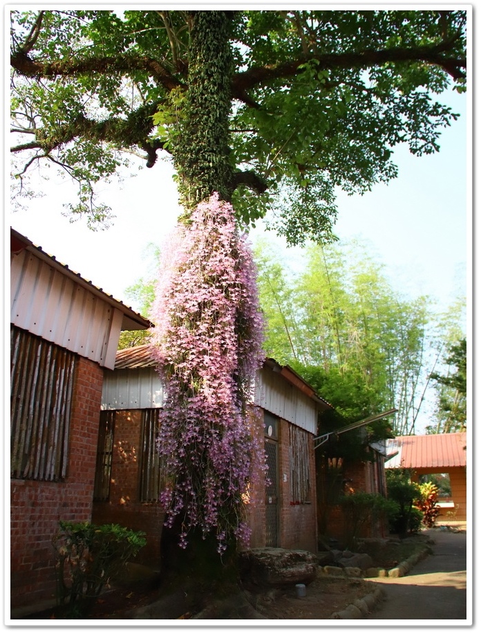 大門口左側這一棵石斛蘭,是園區8棵茄苳樹中最漂亮的一棵,也是最早種植的石斛蘭花樹,據說這裡的石斛蘭已經種植20多年了