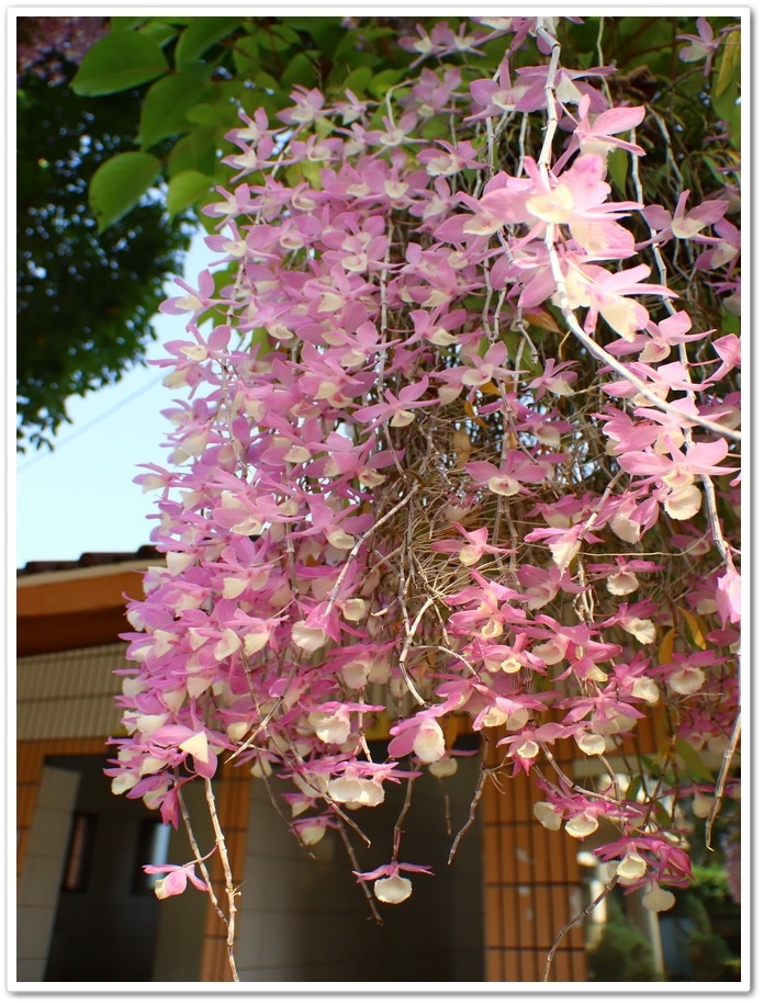 『石斛蘭』又名天宮石斛、垂枝石斛蘭、瀑布蘭、倒吊蘭。『天宮石斛蘭』是一種原產在中南亞的一種石斛蘭的品種,每年在春天的時候,『天宮石斛蘭』的花就會同時開放。形成一個非常美麗的粉紅瀑布