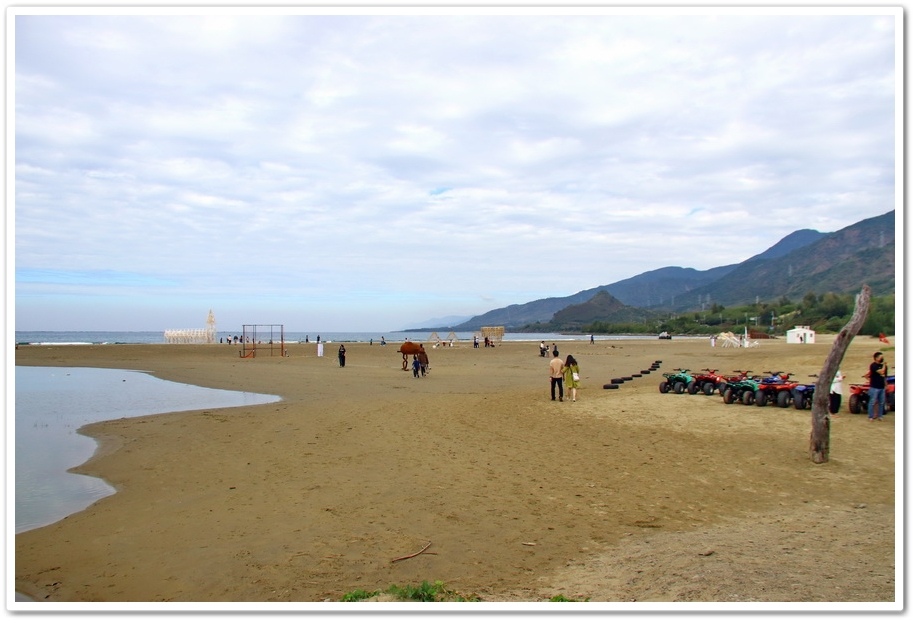 當我們一行人從停車場衝向『港口沙灘』時,就在此時我眼睛一亮,此沙灘宛如似曾相似一般,隨即翻動腦海間昔日的影像,原來這『港口沙灘』就是我在民國72年當兵時,有一次奉命來此沙灘構建看臺,準備演習時讓總統與貴賓們觀看,我們24小時日夜在此趕工,負責搬運板模的連隊,半夜累倒就躺在沙灘上休息,此時感覺海空上的星星好美、好美!