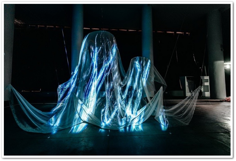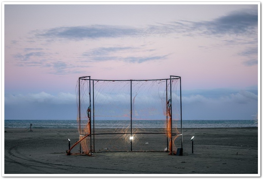 ▲編號7號作品:What we catch, What we Got(官網)。藝術家:Akira Sakashita。藝術家將他對居住在日本的記憶移至台灣,並在一個空間中展示了兩種景觀的重疊,漁網被用作捕捉回憶和風景的象徵