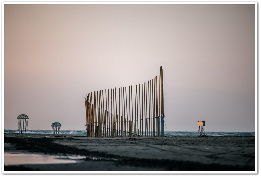 ▲編號8號作品:火蘆葦(官網)。藝術家:群眾自造。以沙灘上的蘆葦叢是海岸第一線的植披聚落為發想的作品,使用PVC管與鐵件構建而成,湊近一點聽,會聽到風吹過作品的聲響,猶如落山風在對觀者歌唱;人們也能在大型裝置內穿梭走動,感受風沙吹拂