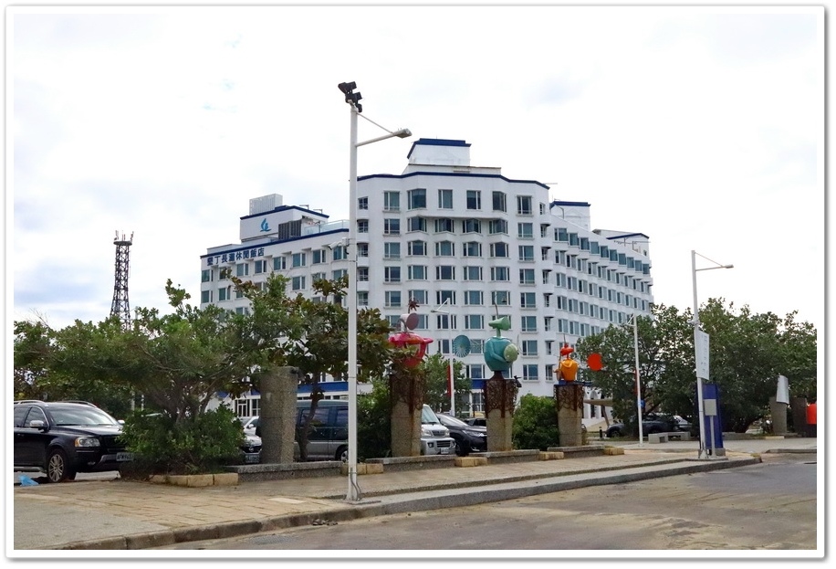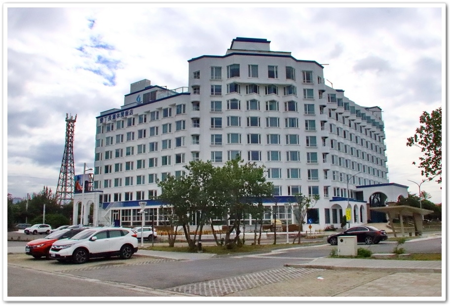 在『海口漁港』旁邊的建築是『墾丁長灘休閒飯店』,是專為親子設計的700多坪大型遊樂場、兒童賽車場、戲水池、三溫暖等多項設施,讓孩子盡情釋放活力,飯店近海口沙灘,徒步即可抵達