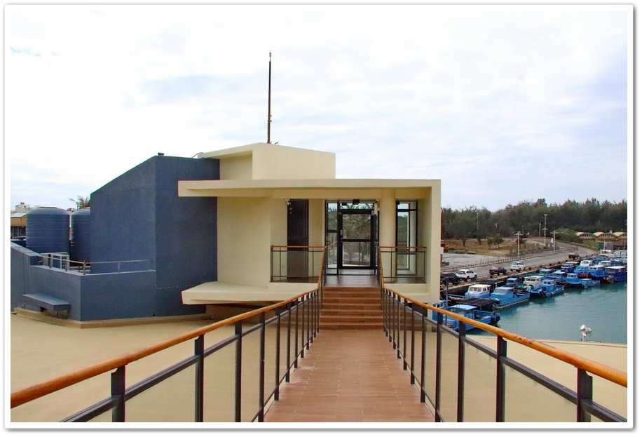 然後我們進入『看海美術館』,位在屏東車城的『看海美術館』於 2021年7月27日正式開幕!美術館改造自原本閒置已久的『海口港候船室』,白色如風帆般的建築,搭配著落地的玻璃帷幕,將恆春半島『海口港』一片湛藍的天空與海洋盡收眼底