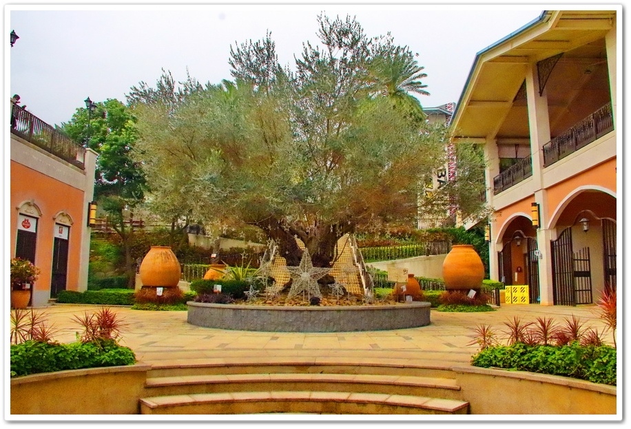 而這棵橄欖樹大有來頭,由日本最受歡迎的植物景觀藝術家『西畠清順』,從遙遠的地中海運送來台,樹齡高達500歲,也讓Outlet更真實的呈現『義大利』的氛圍;夢幻燈區搭配義式建築造景,充滿浪漫的異國風情