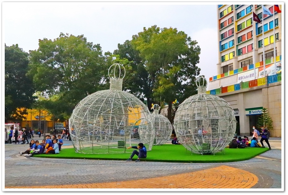 麗寶休息站廣場(福容飯店廣場)則是有三棵巨大的耶誕光球,民眾可走進內部有如置身於光海隧道之中,浪漫又美麗,有別於常見的經典耶誕樹,耶誕光球的大型造景今年只有在麗寶才看的到喔!