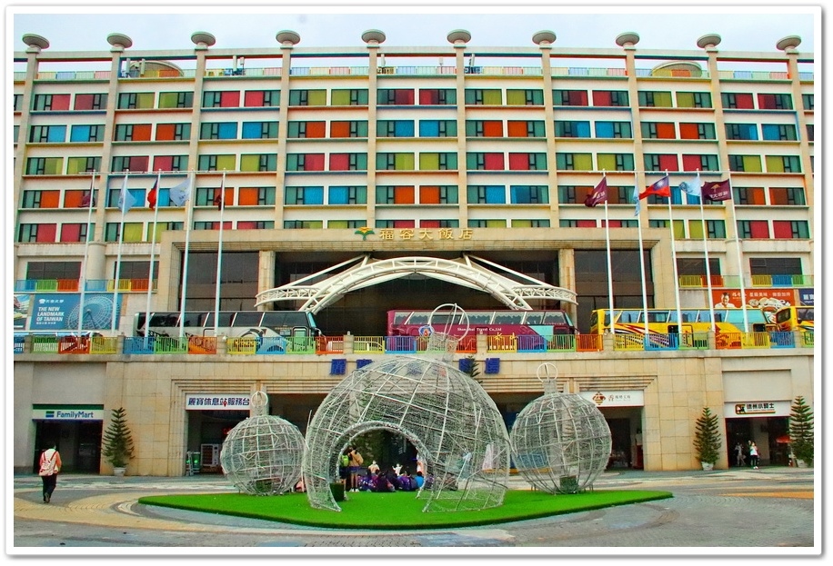 可以穿梭於最大顆的紫色球體內,後方就是五星級『福容大飯店』!玩樂園、住飯店、逛Outlet、開卡丁、搭摩天輪 魅力版圖一次滿足