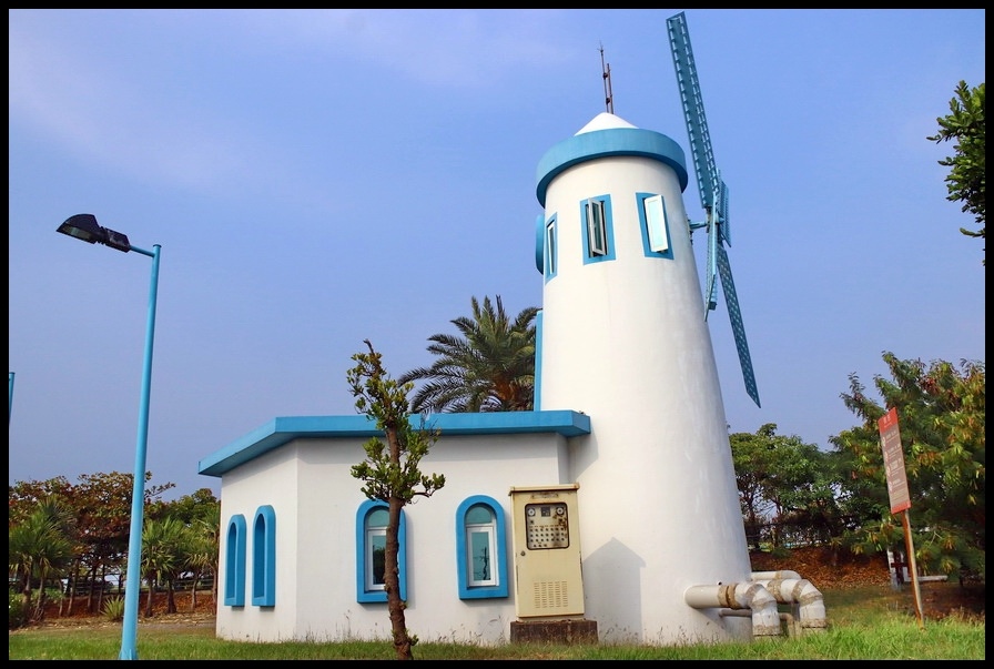 其實這座藍白色的風車是一座抽水站,是做為『生態式滯洪池』調節用的抽水站,但沒想到一座抽水站也能這麼美,難怪會吸引我們來拍照