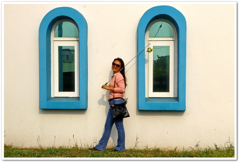 只因為我想拍藍白色的風車,大家就跟著我走,後來女導遊跟上才跟我們說走錯了!但也因為這藍白色風車很漂亮,想說團員想走,就讓我們去走吧!至少能拍到不一樣的風景!而且回程我們還是會走內圈,可以欣賞到更多不一樣的風景