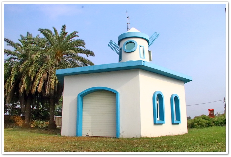 就是這座藍白色的風車,在停車場遠遠就能看到它,也吸引我們的目光,像是燈塔般指引我們的到來