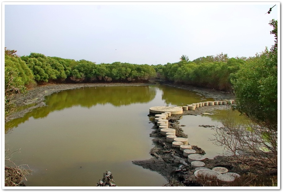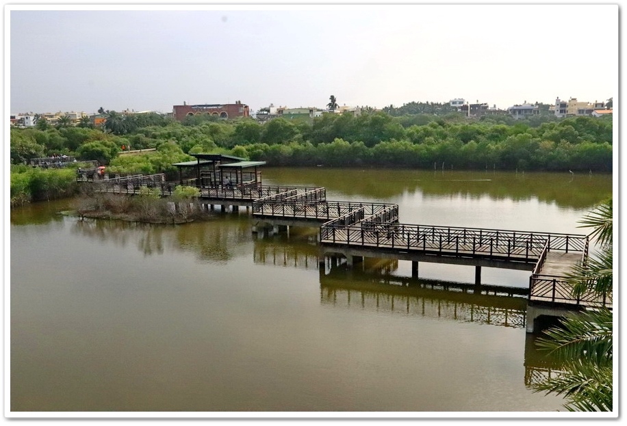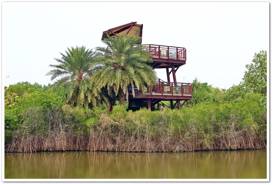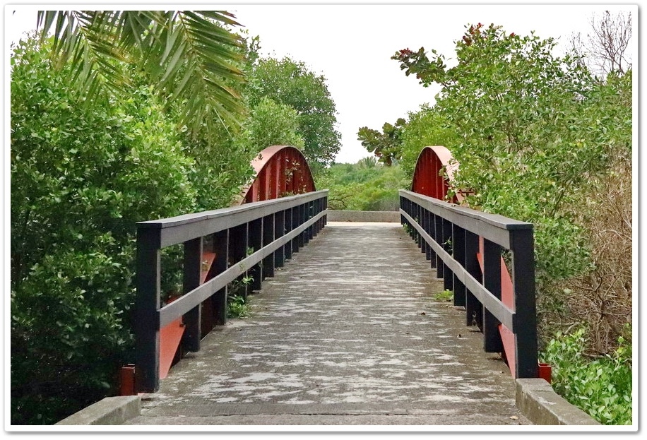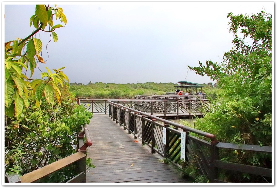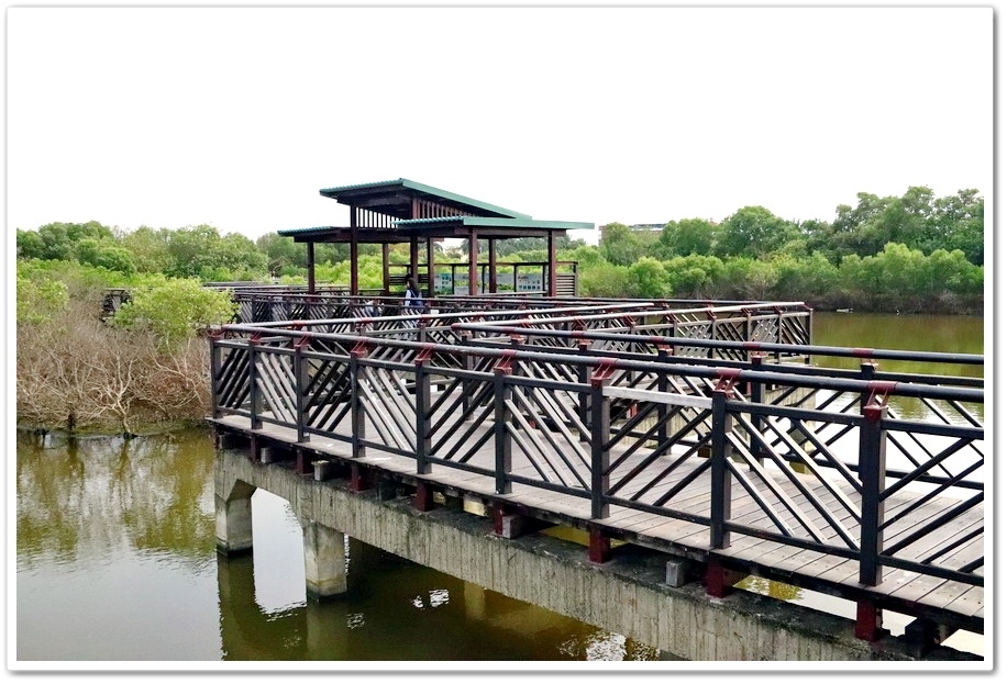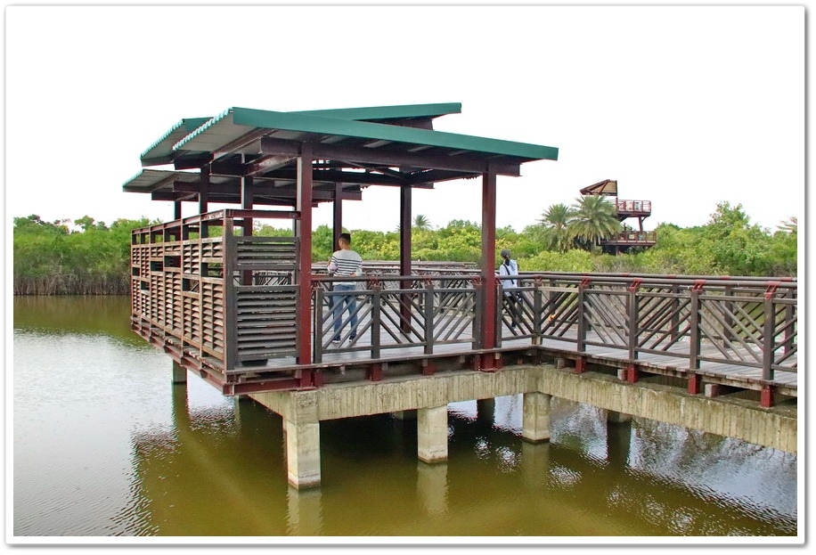 續上篇!當我們在『大鵬灣國家風景區』乘著『仁鵬遊湖公司』太陽神號,在全台最大『潟湖』裡遊船欣賞『鵬灣跨海大橋』,還有海面上觀賞『蚵殼島』及號稱大鵬灣海上寶石的『東津巨蛋』濱灣之心,再走一趟宛如星光大道般的『歐風碼頭』,進入『東津巨蛋』參觀之後,接著繼續來到屏東縣林邊鄉『崎峰濕地公園』九曲橋生態步道賞鳥