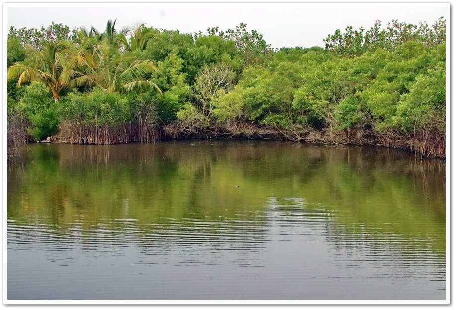 『大鵬灣』為台灣紅樹林分布的南界,目前較具景觀成帶狀的有三處:一為大鵬灣水道紅樹林,二為嘉蓮路塭岸的海茄苳,三為東港鎮內河道紅樹林。前者位於台17南下省道右側,假日常見路旁停滿汽機車,由步道至林下很容易觀察突出泥地的呼吸根、幼苗及整個生態環境