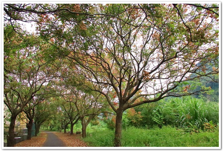 其中感覺:彰化溪湖【東螺溪台灣欒樹隧道】、.雲林北港【樹腳里過溝社區中庄台灣欒樹】,還有這處南投竹山【初鄉橋自行車道】台灣欒樹最美,因為它們都是屬於隧道式的台灣欒樹美景,只是『初鄉橋自行車道』台灣欒樹高度較高,跟『東螺溪台灣欒樹隧道』一樣高,所以有點比較不好拍照