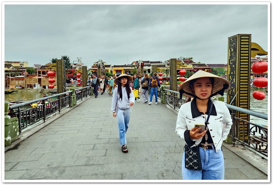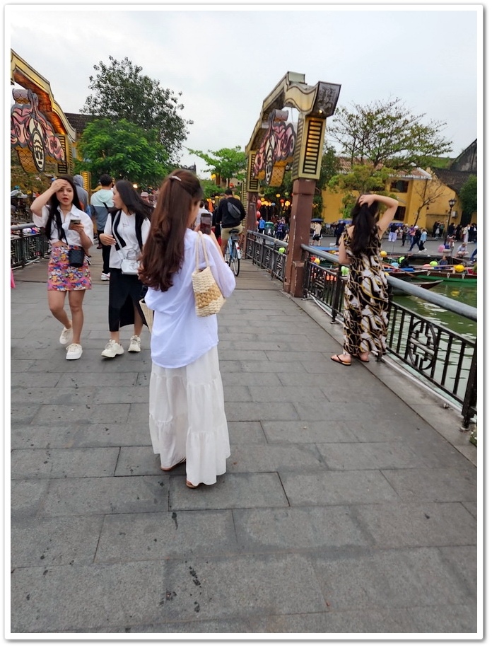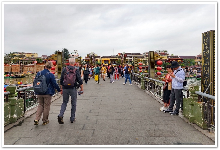 然後我們要走過這座橫跨『會安河』的橋,才能到達對岸的小島,雖說是小島,但其實幅員還是相當廣闊,長1.5公里,寬550公尺,島上有住宅區、渡假飯店、商店街,及我們要去的河濱公園跟會安夜市