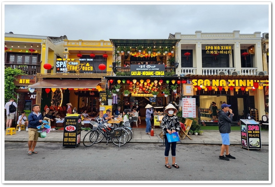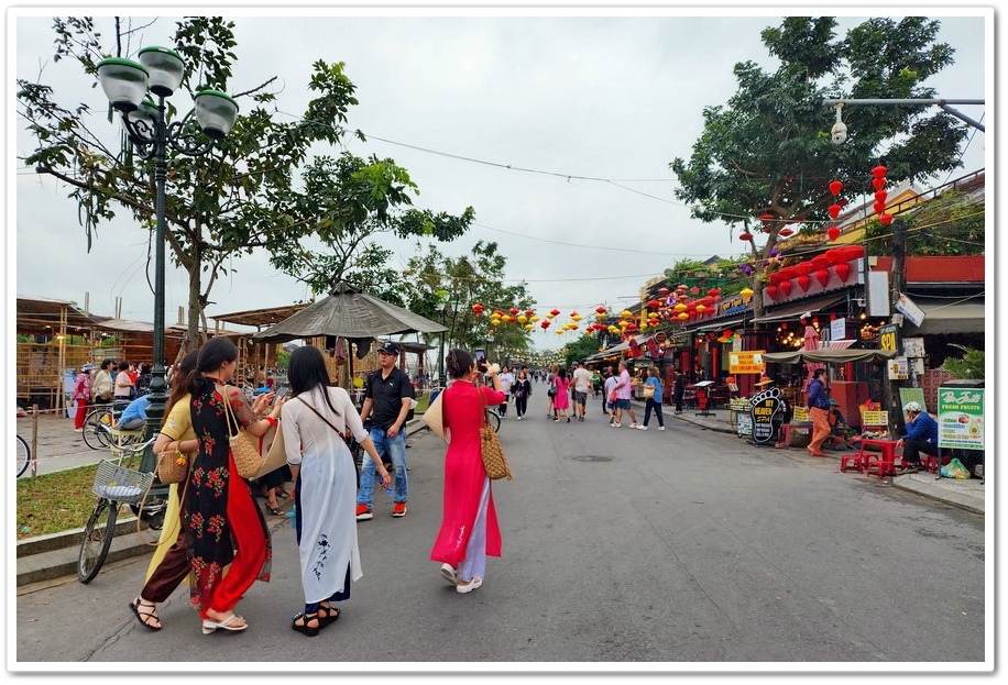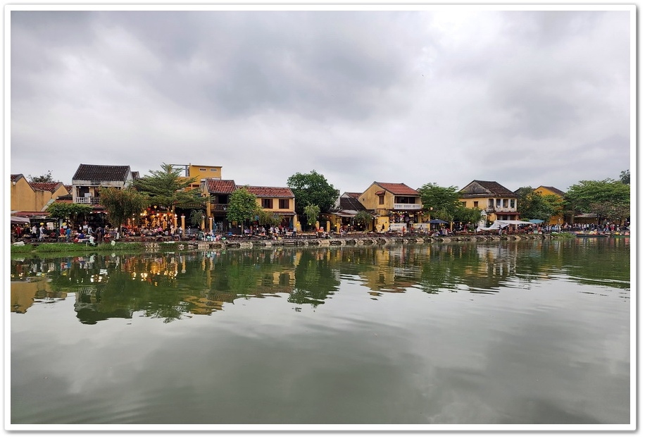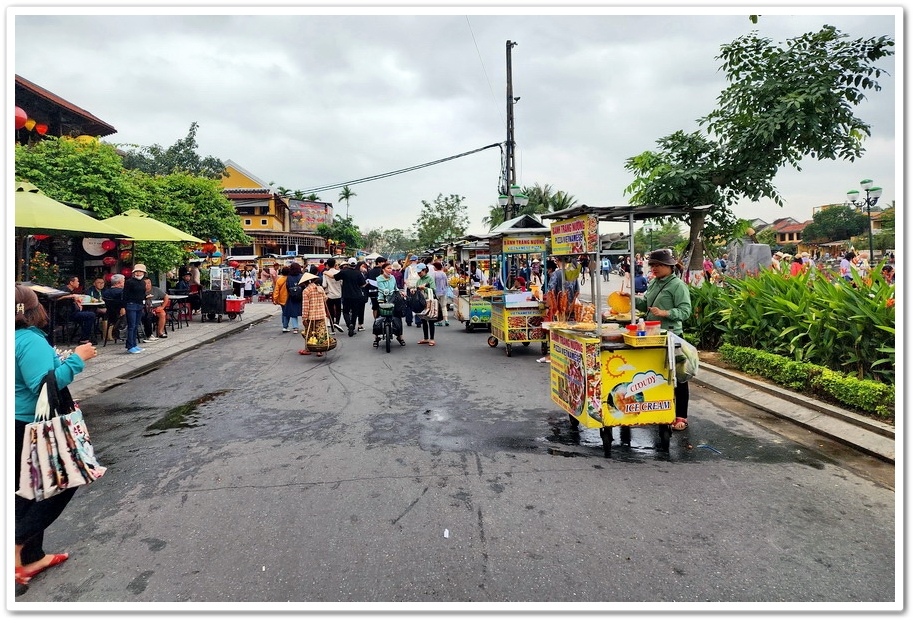 接著我們要走到對岸的島嶼看看,並逛逛『會安夜市』。來這座古城,穿梭在古街、古宅之中,有種恍若隔世的錯覺,街區雖不大,但逛起來還是很累人,這裡有咖啡廳、餐廳、小吃攤、藝廊、手工藝品店沿街林立,但我們要一直待到傍晚,等待晚上要進行放水燈祈福儀式