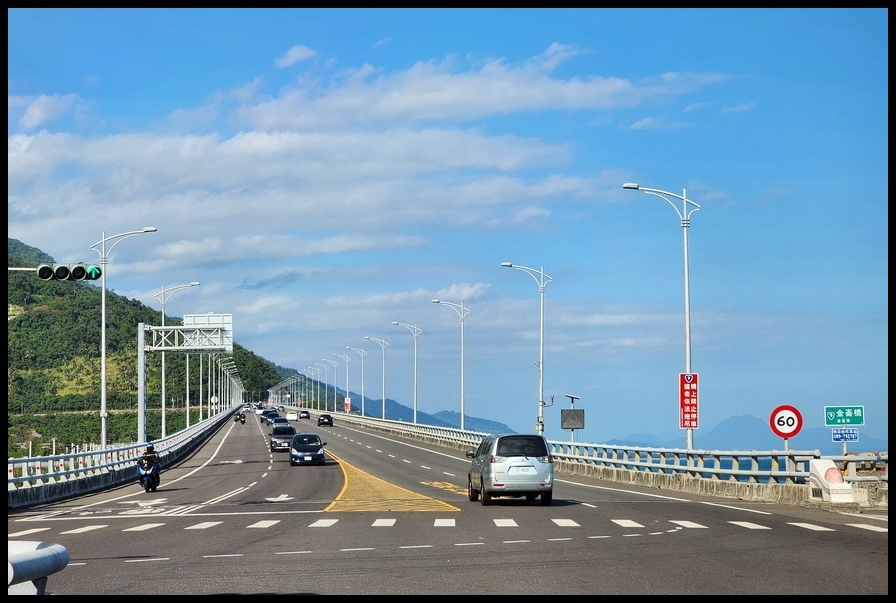 續上篇!當我們拍完全臺最美車站台東『多良車站』我愛多良及向陽薪傳木工坊『天使之翼』之後,接著我們來到『金崙溫泉風景區』,趁車輛在等紅綠燈的時候先拍一張全臺灣最美高架橋『金崙大橋』,然後下一張是2020年時來台東旅遊時,在遊覽車內由北向南拍攝,有一種延伸到太平洋的感覺