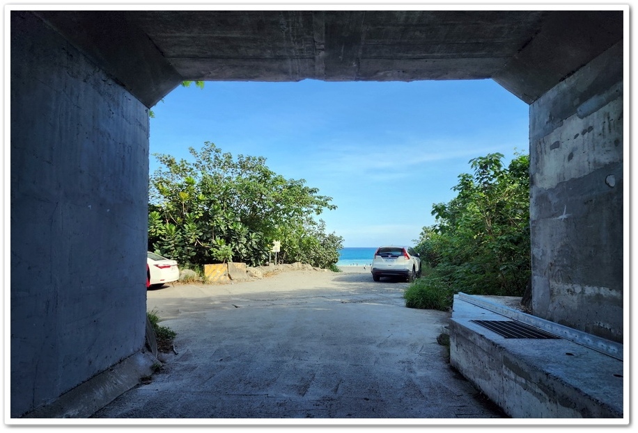 此時我們轉進『金崙溫泉風景區』,但我們沒泡湯、也沒去7-11金倫門市,因為我們要去『金崙海灘』尋找台東秘境『金崙涵洞』,涵洞盡頭就是一片湛藍且遼闊太平洋美景,因此涵洞有『台東最美隧道』之稱