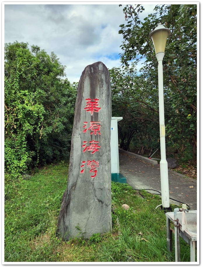 『華源海灣』為方便旅客前來,南迴公路旁設有臨時停車場與涼亭,海灘上也有使用漂流木建造的『心形立牌』與『平安』兩字(上圖),就是希望能夠吸引人駐足欣賞,挖掘屬於這裡的美