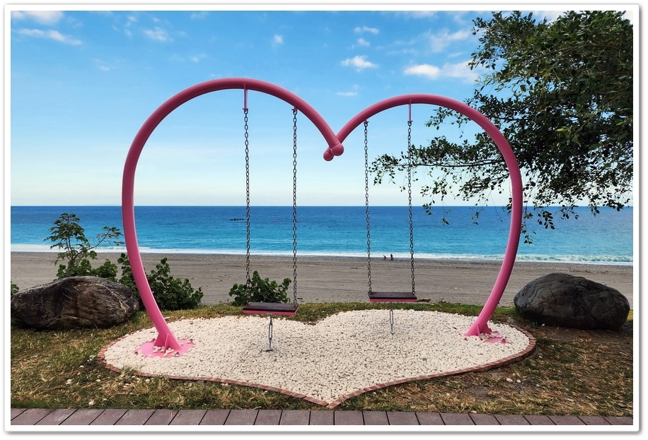 但現在『華源海灣』經過重新整理,『心形立牌』與『平安』兩字沒有了!改做成這個紅色大愛心鞦韆,可以讓情侶們在此一起拍照。一望無際的漸層大海,更是擄獲了許多到訪人們駐足欣賞眼前海天一色、海鳥成群的絕美自然景觀