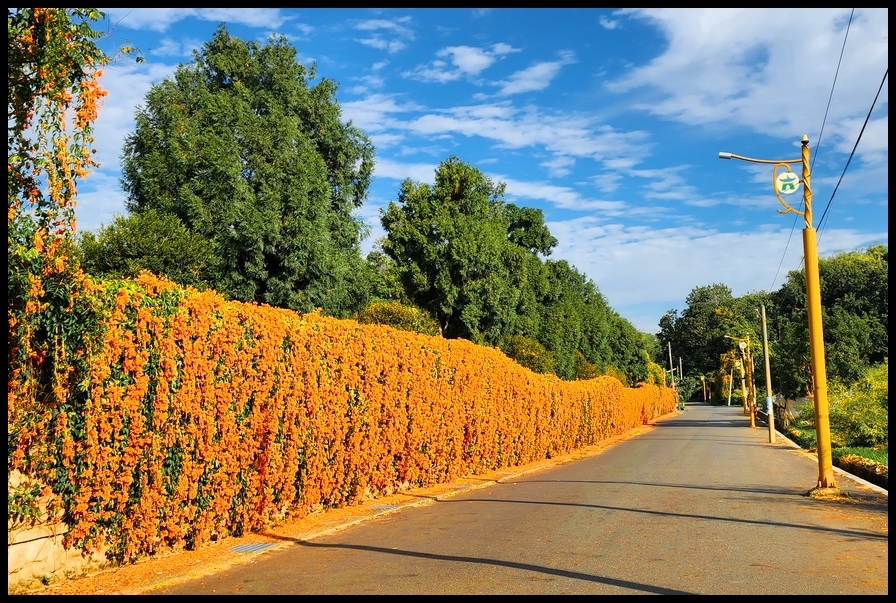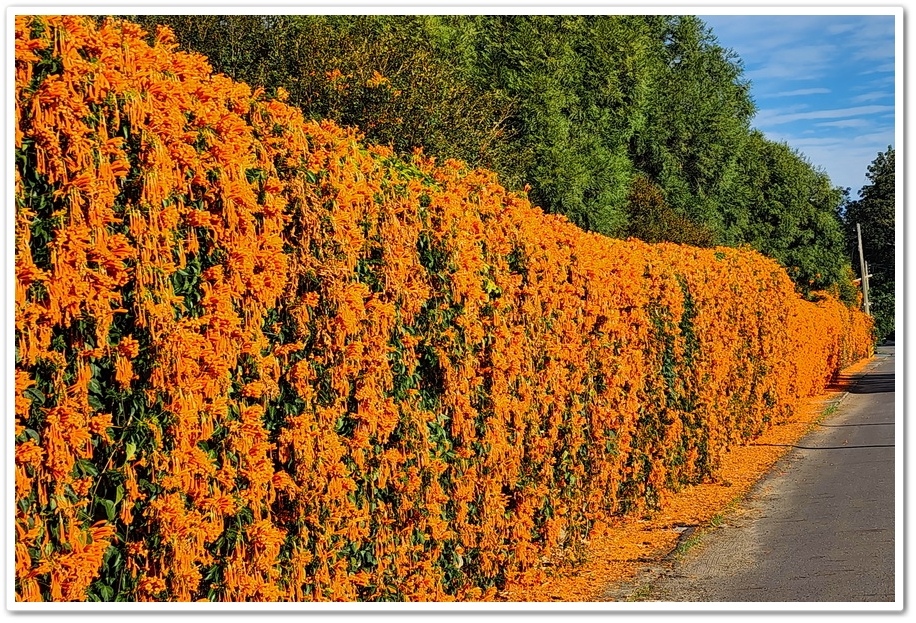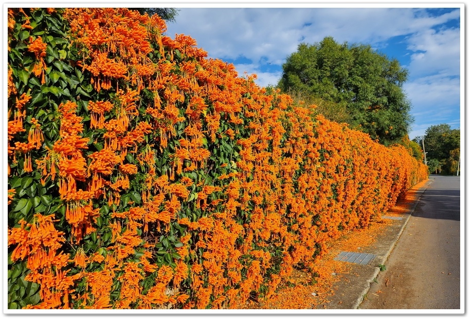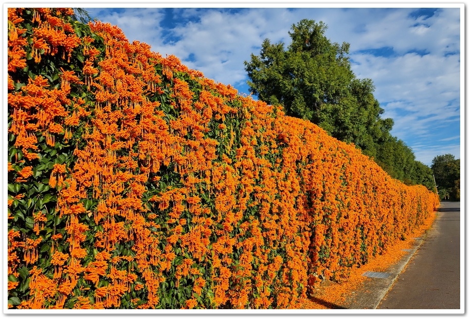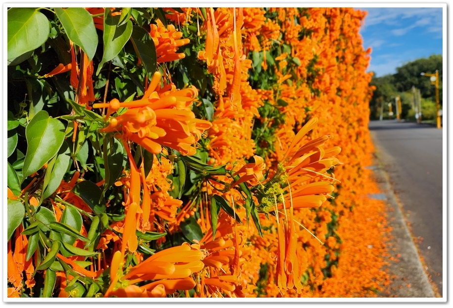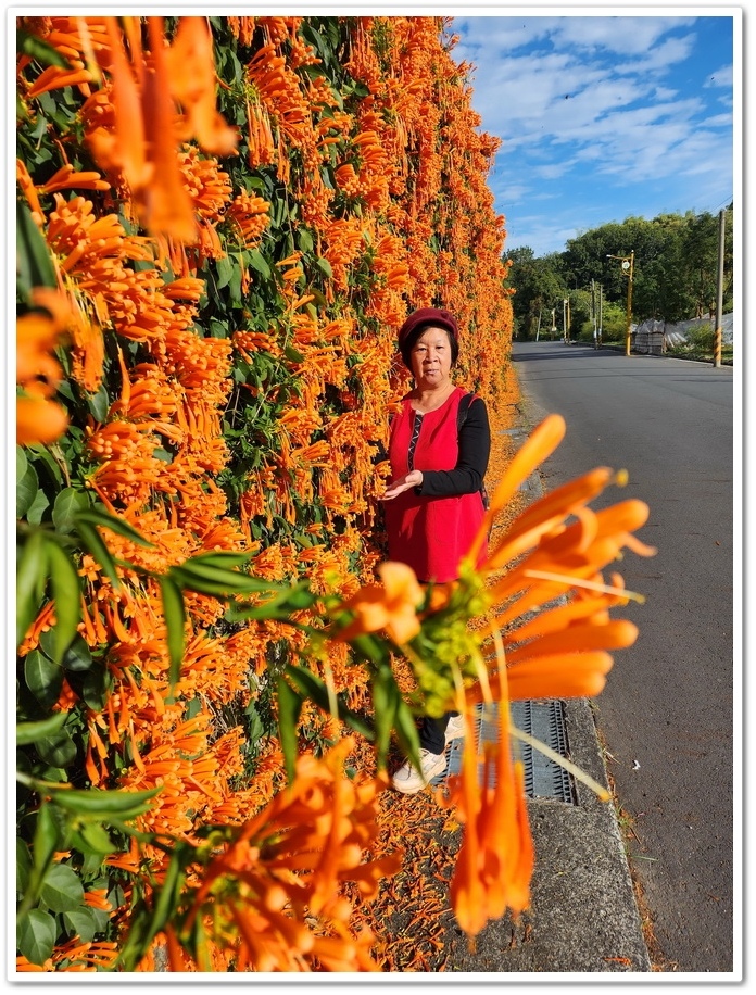 『岩山路』有大片炮仗花,但很少人知道這裡的炮仗花,炮仗花總長度約有250公尺,花牆下水溝有加蓋,而且『岩山路』人車稀少,整個拍照環境比苗栗銅鑼『環保公園』的炮仗花還要好,但就是只有在地人才知道的炮仗花美景
