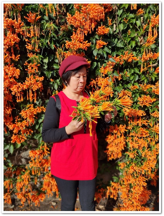 有如一位賢淑的婦女,在未曾受到觀注的眼神時,花朵它卻早已掉落滿地,不管受到垂愛與否,如今我再度的注意到這不起眼的庭院角落,有著默默花開的炮仗花,正等著人們的垂憐與愛惜!