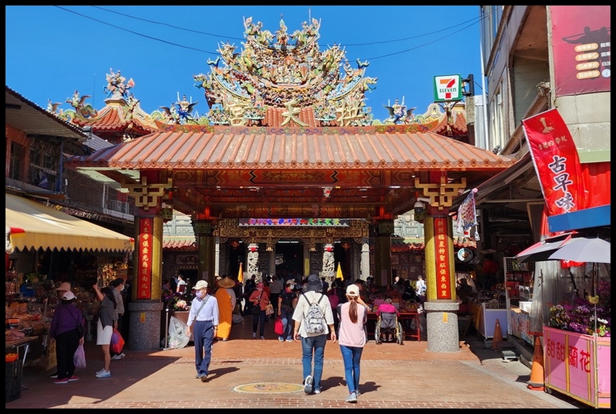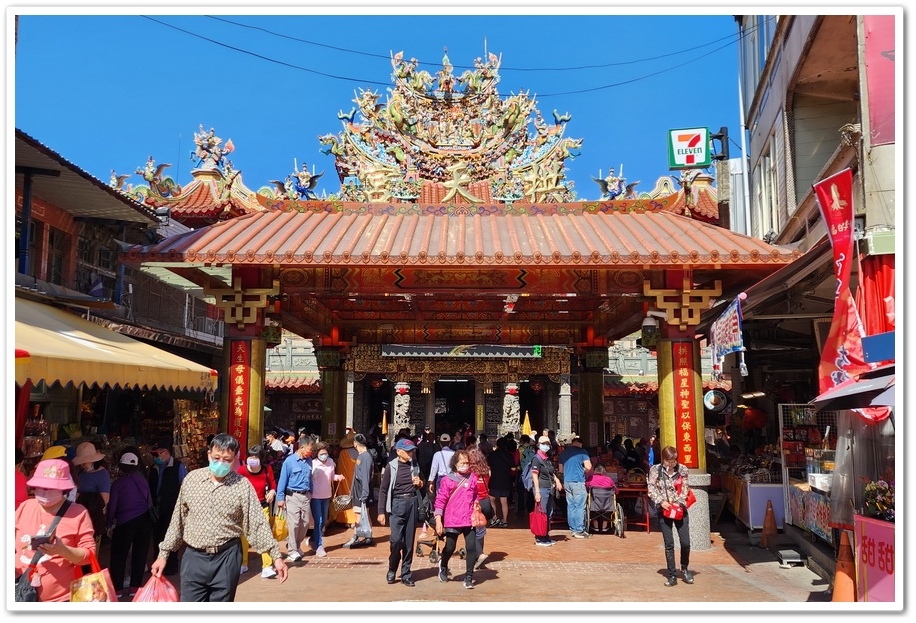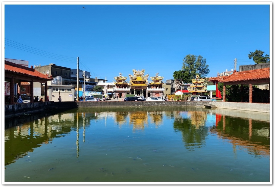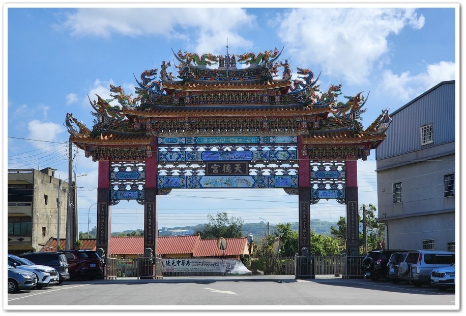 上圖並非白沙屯『拱天宮』,這裡是遊覽車停放的停車場,水池後方是白沙屯『天德宮』,這裡的停車場可免費停上百輛小型車和遊覽車,而白沙屯『拱天宮』則是需由『天德宮』右側小巷進入,巷內有攤販在販賣著各式農產品與小吃