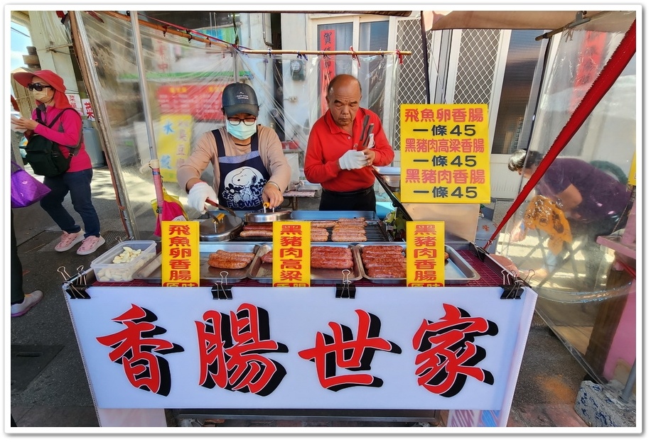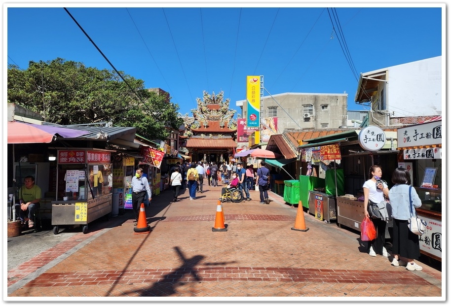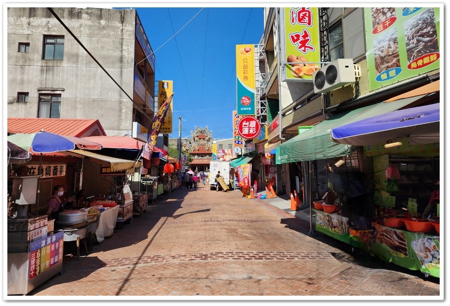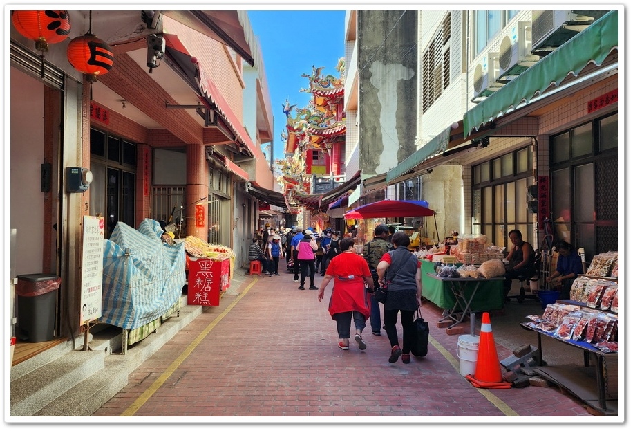 進入小巷後有雪花餅、黑糖糕、農產等,以及金紙可讓信眾拜拜之用。『白沙屯』舊名為『白沙墩』,純樸又美麗的名字,西部縱貫鐵路上的一個濱海小站,位於苗栗縣通霄鎮西北方,北臨後龍鎮,是通霄屯墾最早的地方。清康熙年間就有先民入墾,首開風氣,乾隆時期已漸成市街,先民駐居人數日益增加