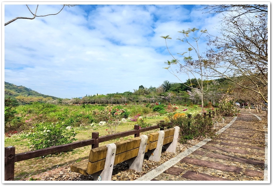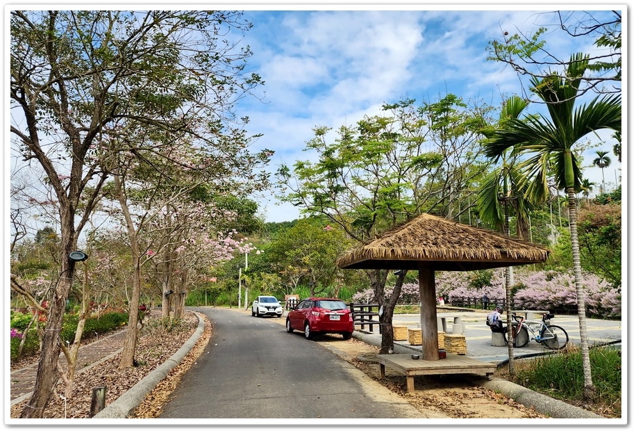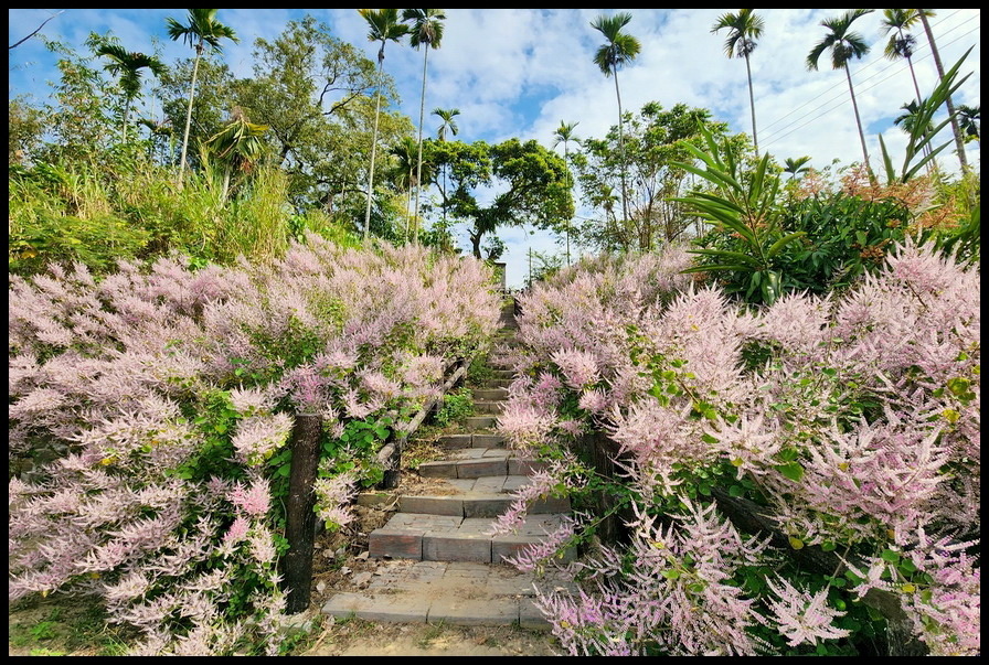 然後在隔壁還有一處更大的『麝香木』廣場,看起來很像是停車場之類的,或是當地村民廟會使用的廣場,但這裡不能停車,遊客車輛建議停在『瑞龍宮』或『榮生公園』,不建議停在『清水溝溪麝香木花道』,因為花道路狹小,會車不易且影響拍照