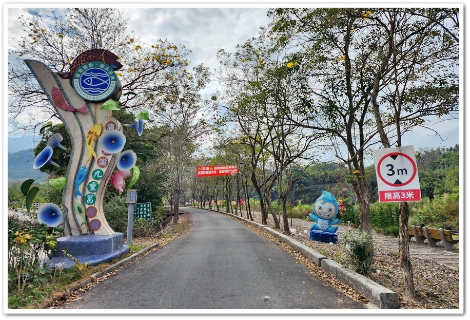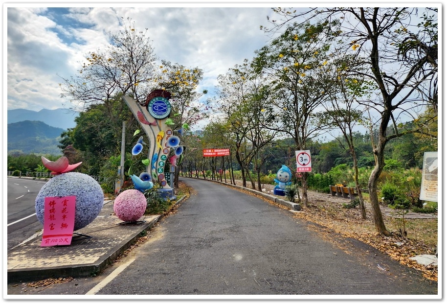 然後花道最後段還有一處『榮生公園』,這裡是『清水溝溪魚蝦保護區』,可以在這裡感受農業與自然保育的自然美景,『榮生公園』草皮上還有5隻乳牛公仔造景可供拍照,也提供停車場給遊客停車