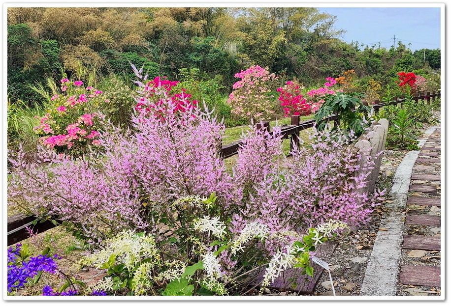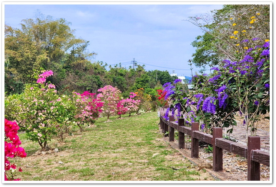南投鹿谷鄉『清水溝溪』,沿途種植著許多不同種類花卉,當然就是以『九重葛』及『麝香木』為最大宗,完善的木棧步道更是讓遊客覺得好貼心,漫遊『清水溝溪』賞花真是一件好愜意的休閒活動