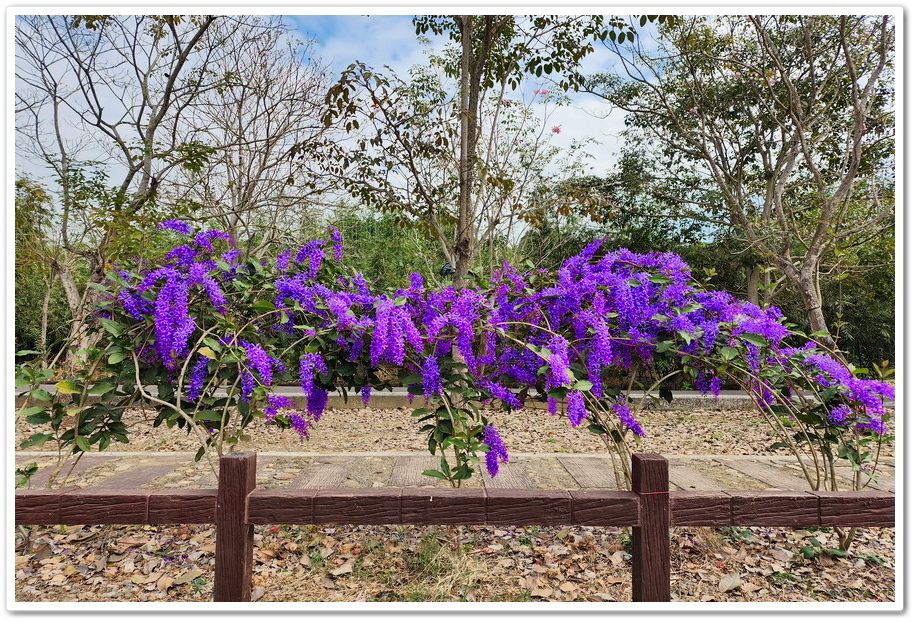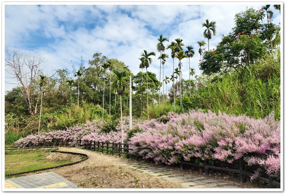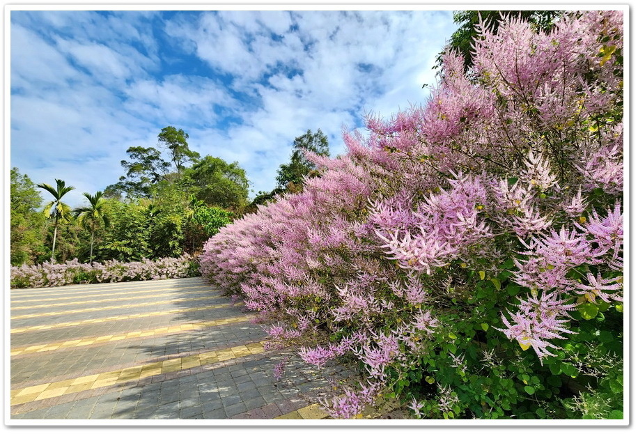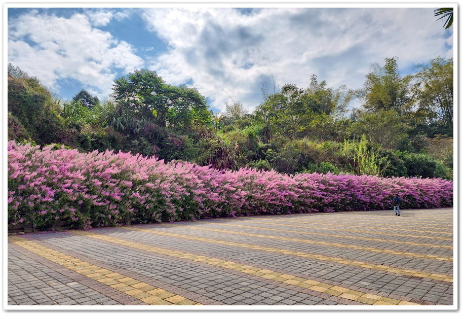經過『瑞龍宮』之後,接著就看到了『麝香木』,這裡有2處一大一小的廣場,沿著廣場邊種植了許多『麝香木』成ㄇ字形,兩處廣場的『麝香木』各有千秋,都是很好的『麝香木』拍照熱點