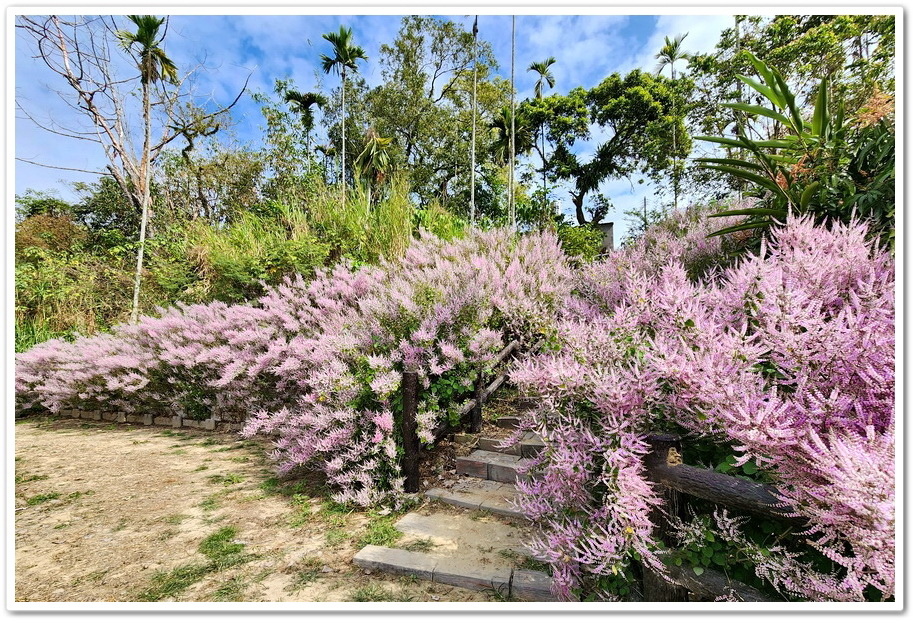 絕美的粉紫色花牆,卻讓喜愛賞花的遊客、網美們一拍再拍,直接秒殺一輪記憶卡,將社群IG洗版一片粉紫色,相當浪漫!目前麝香木陸續盛開中,花季預計可長達整個三月之間,不妨可以把握花季,順道規劃集集景點、鹿谷景點,來趟南投一日遊吧!