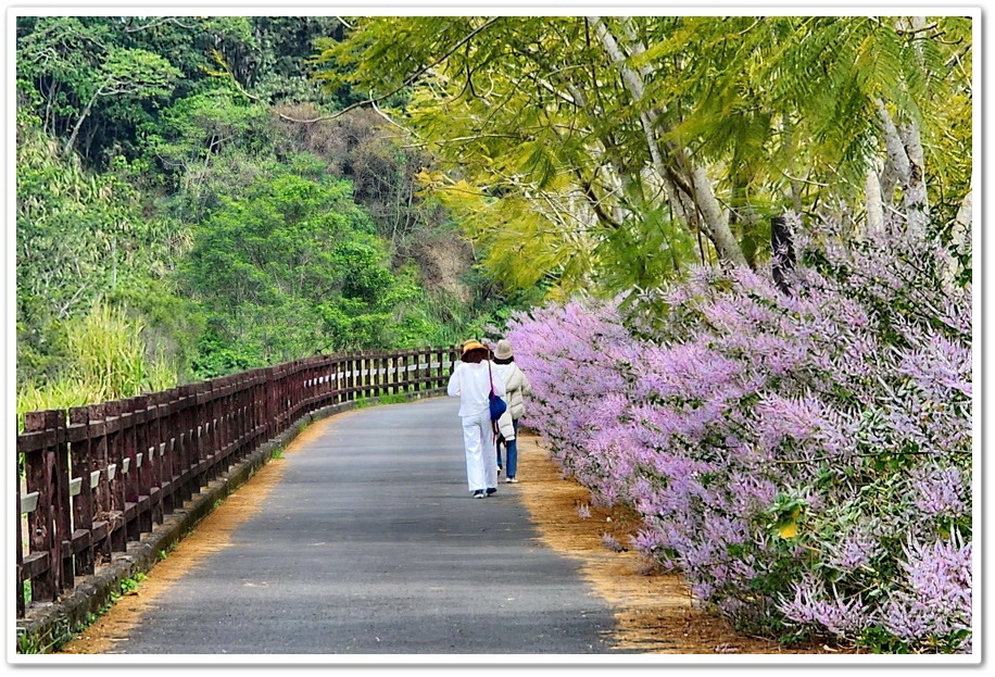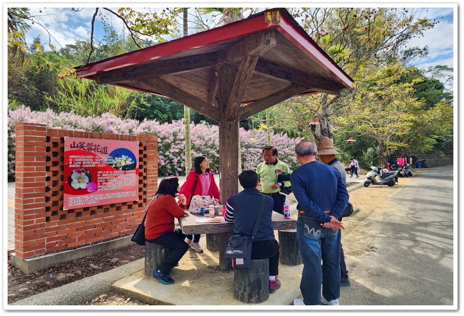 上圖穿黃綠色衣服的老先生是當地的住民,他說這裡的『麝香木』都是他種的,今日遇見栽花的主人,當然要拍照一下鼓掌,感恩這位老先生的無私奉獻,我們才有今日的『麝香木』可賞